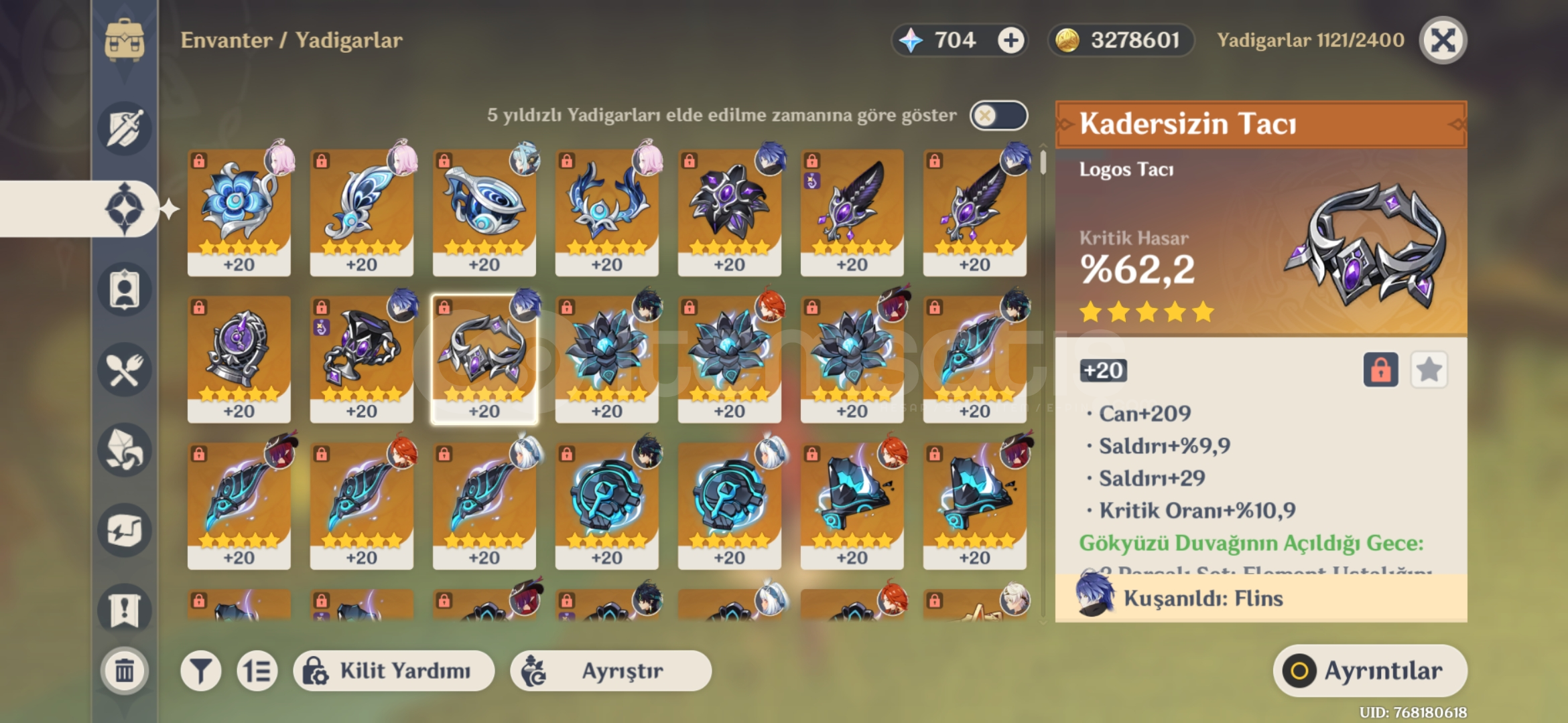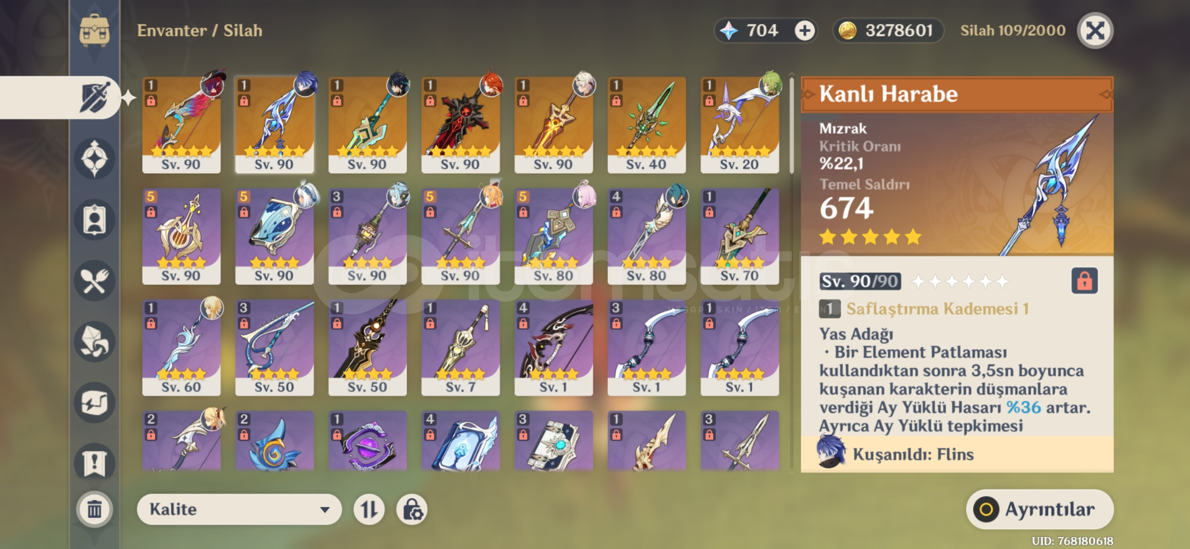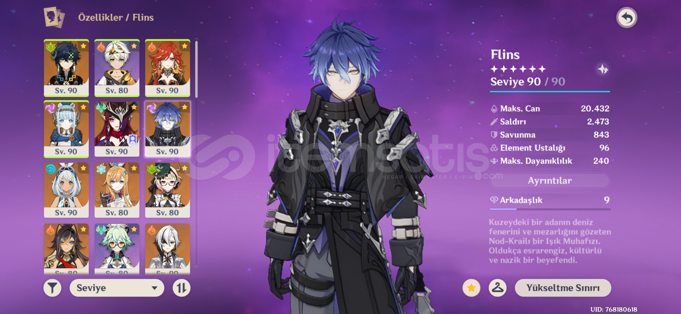 KarakterlerC1 Flins + Kanlı HarabeChasca + Astral Akbabanın Kızıl TüyüKinich + Dağ Kralının DişiArlecchinoİneffaMualaniMavuika + Kurdun MezartaşıEscoffierEmilieC2 DehyaQiqiKeqingJeanKhaj Nisut'un AnahtarıEzeli Yeşim MızrakAmos'un YayıHarita tamamen fullenmiştir sadece hadravameth çölü %80 kaldı.Çok fazla görev var ana hikaye sumerunun sonunda, world questler bolca var.Karak...