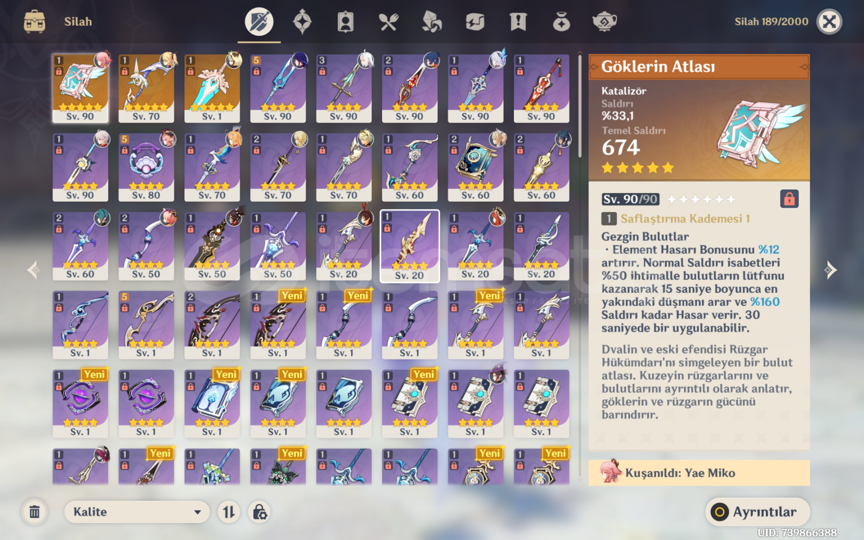9 Adet Banner 5* Karakter4 Standart Karakter1 Göklerin Atlası1 Amos Bow1 Göklerin GururuDünyanın Çoğunluğu BoşturNatlan ve Sonrası tam olarak açılmamıştırZornluluktan Satıyorum ilk göz ağrımı :(