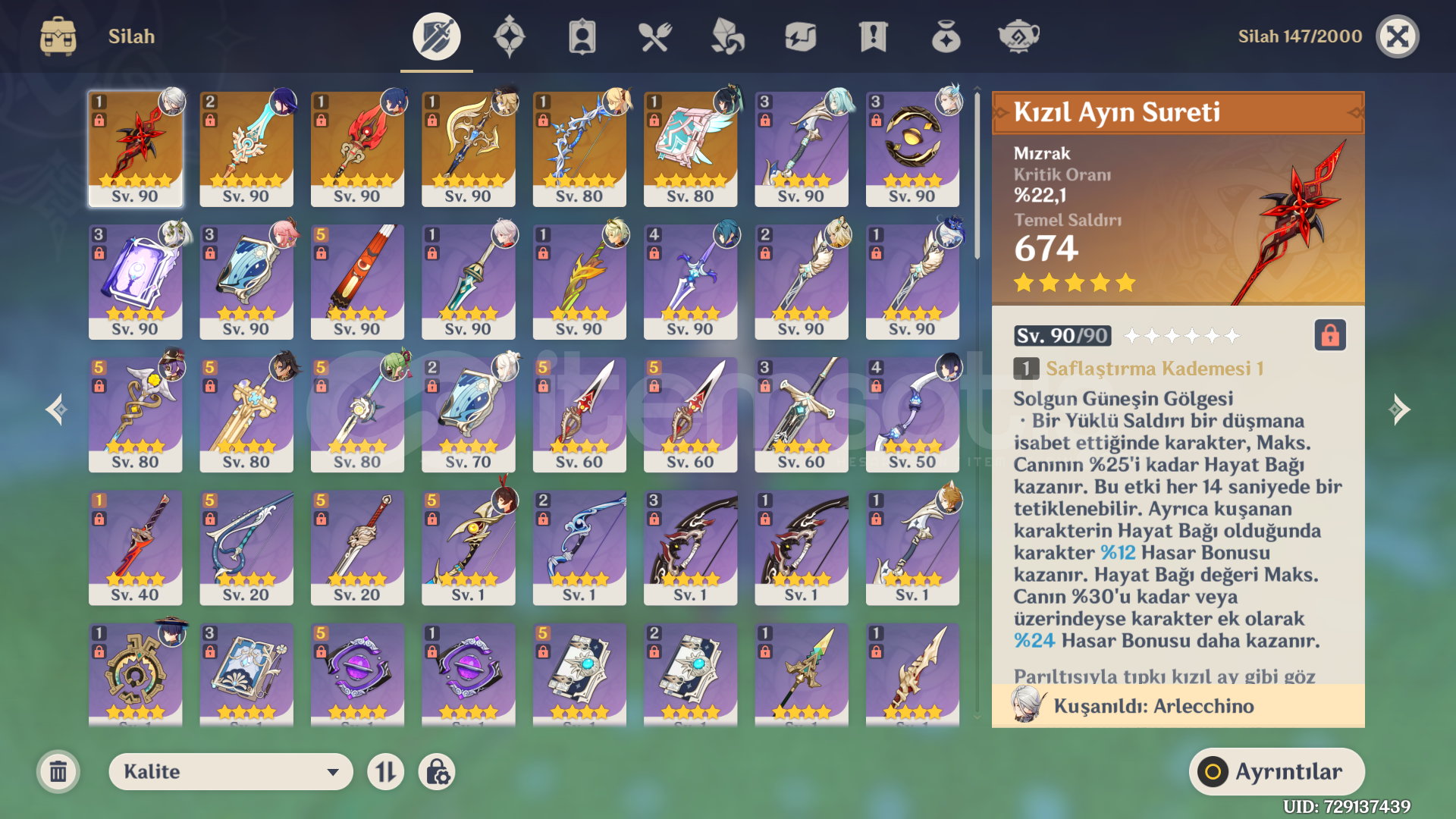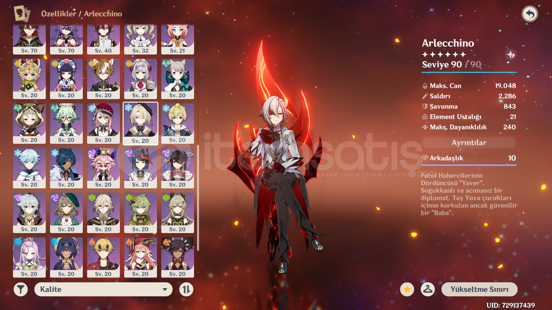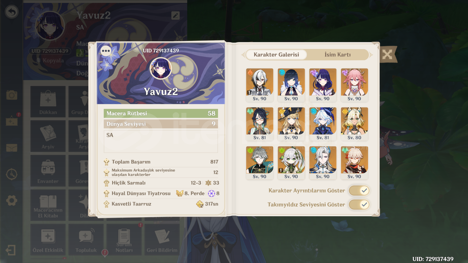 Hesabın fontaineden sonra gelen alanlar tamamen bomboş natlan ve nod krai daha hiç girilmemiş açılmamış. Chenyu vadisi de yarım bile değil. kanyonun yüzdesi düşük onun dışında sumeruda 60 70 civarı bölgeler var kısacası hesapta daha wish kasacak tonla içerik duruyo. Yan hesabım ana hesabıma top up yapmak için satıyorum yoksa hayatta satmam hesabı çok değerli hesap. pazarlık cüzi miktarda yaparız ama çok fazla düşmem çünkü dediğim gibi ihtiyaç var(nefere). hesabı direkt mailiyle verecem boş maile koydum. zaten bütün detaylar resimlerde var ekstra sorunuz olursa cevap veririm.
