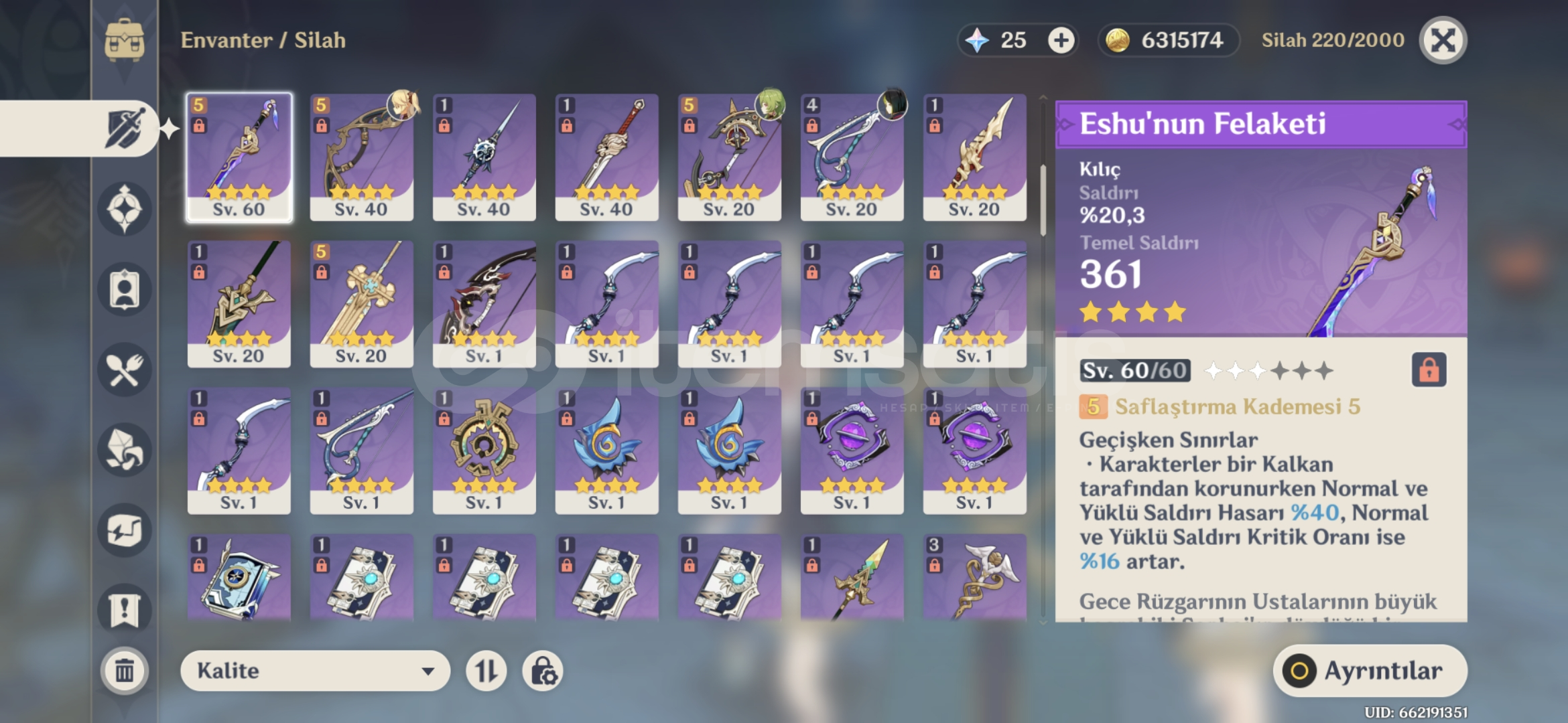 • Fotoğraftaki gibi 7 tane 5 yıldızlı silah mevcut.
