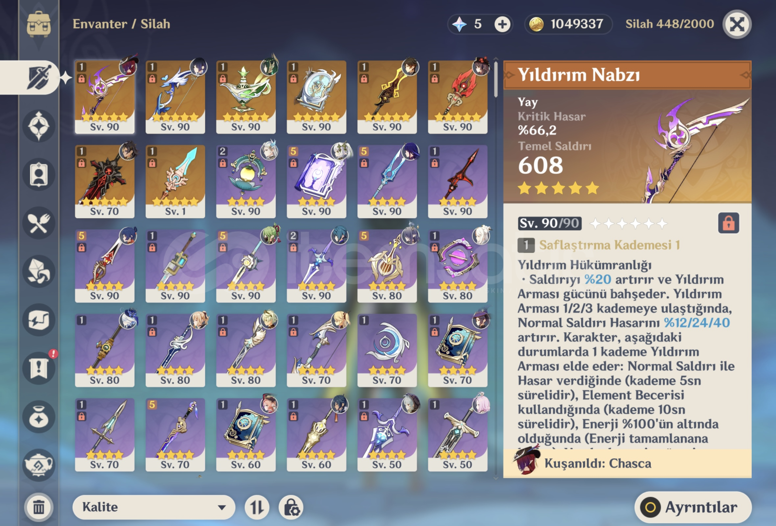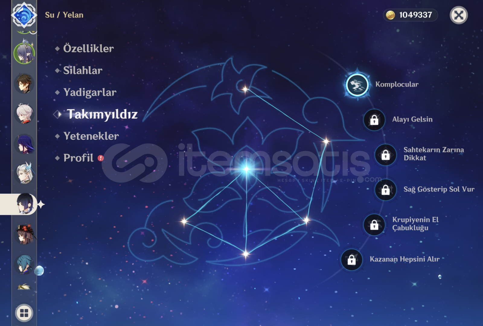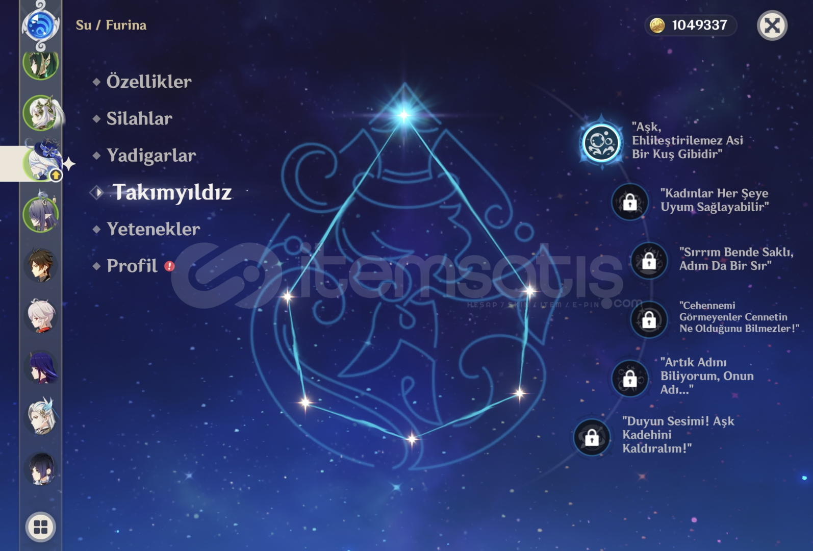 hesapta c1 furina ve c1 yelan vardırkarakterlerin buildleri çok iyi olmamakla beraber gayet iyi durumda, artifact açısından da zengin ar60 olmasına çok az kaldı sorunuz varsa özelden sorabilirsiniz