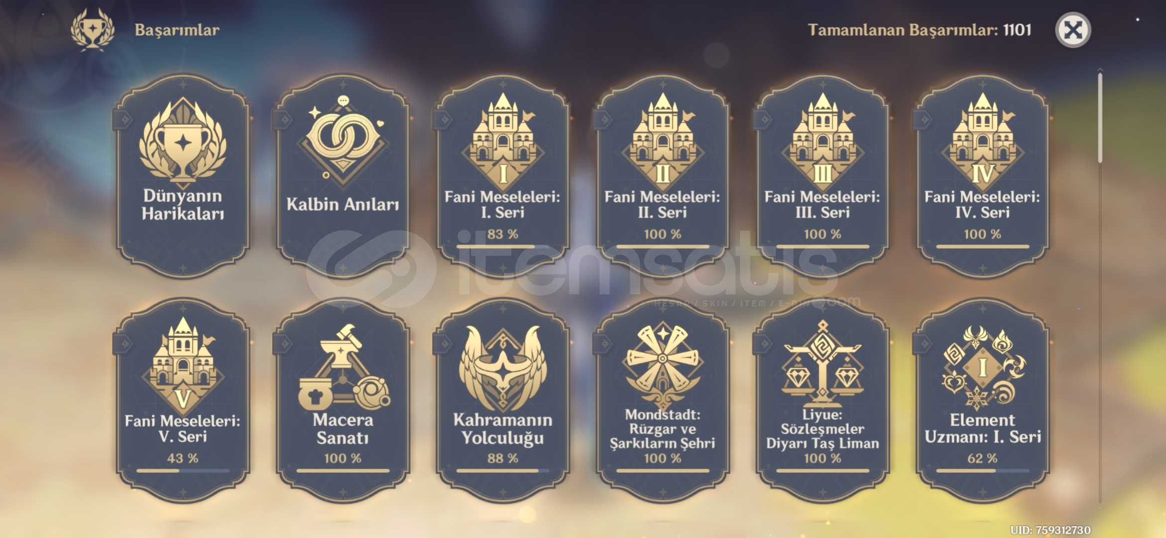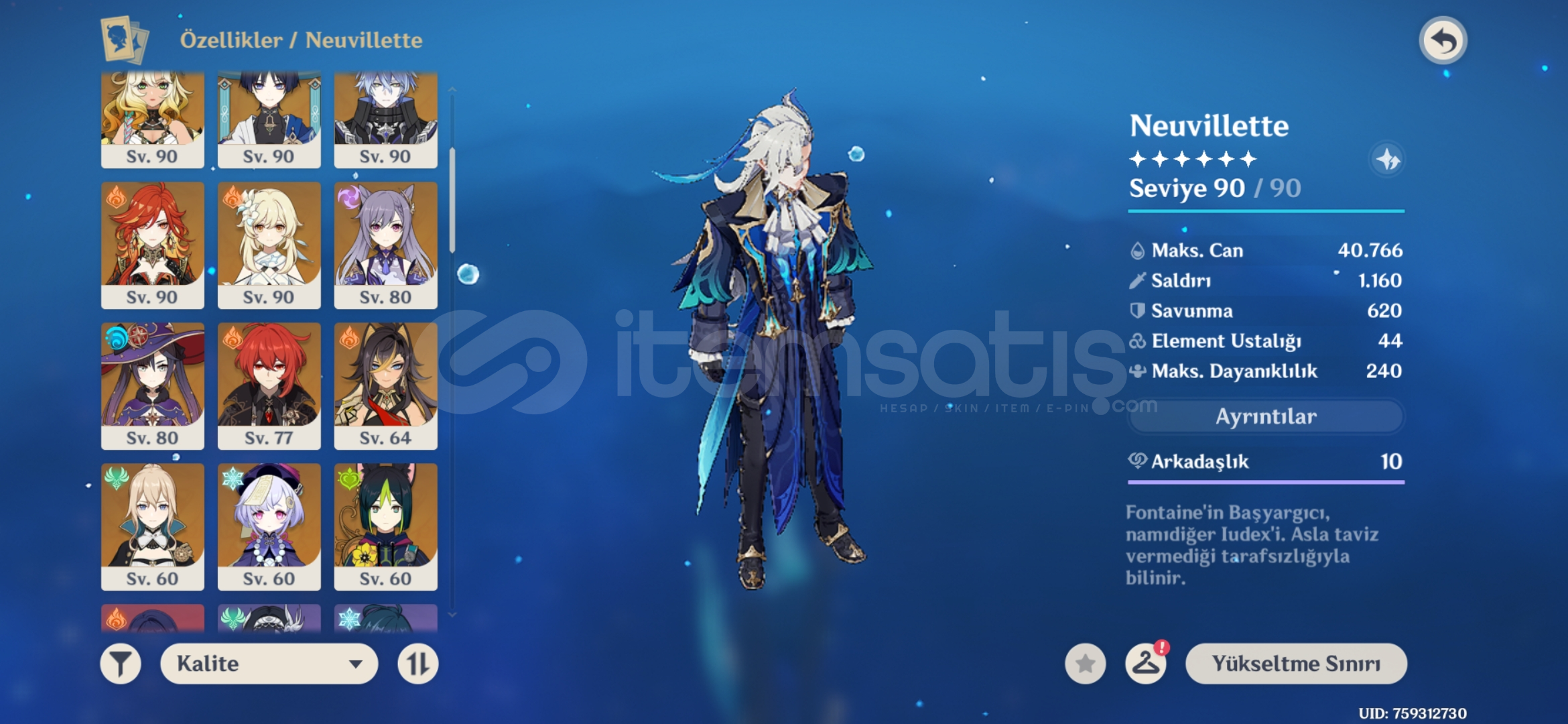 Eu 24(+10 cons)x5yıldızlı (gezgin dahil değil) 1101 başarım dünya ful c0r0 mavuika (bp silahı takılı)c0r0 flins(bp silahı takılı)c0r0 xilonen c0r0 kazuha (xiphos var) c1 r0 avare c0r0 arle c0r0 mualani c0 r0 inefa standartlardan mizuki eksik diğerleri var c1 mona c1 tignari c1 dehya c1 qiqi c2 diluc mevcut yelan bis de mevcut 2 kez bp açılmıştır(1 tanesi +10 seviyeli olandan) 2 seneye yakın welk...