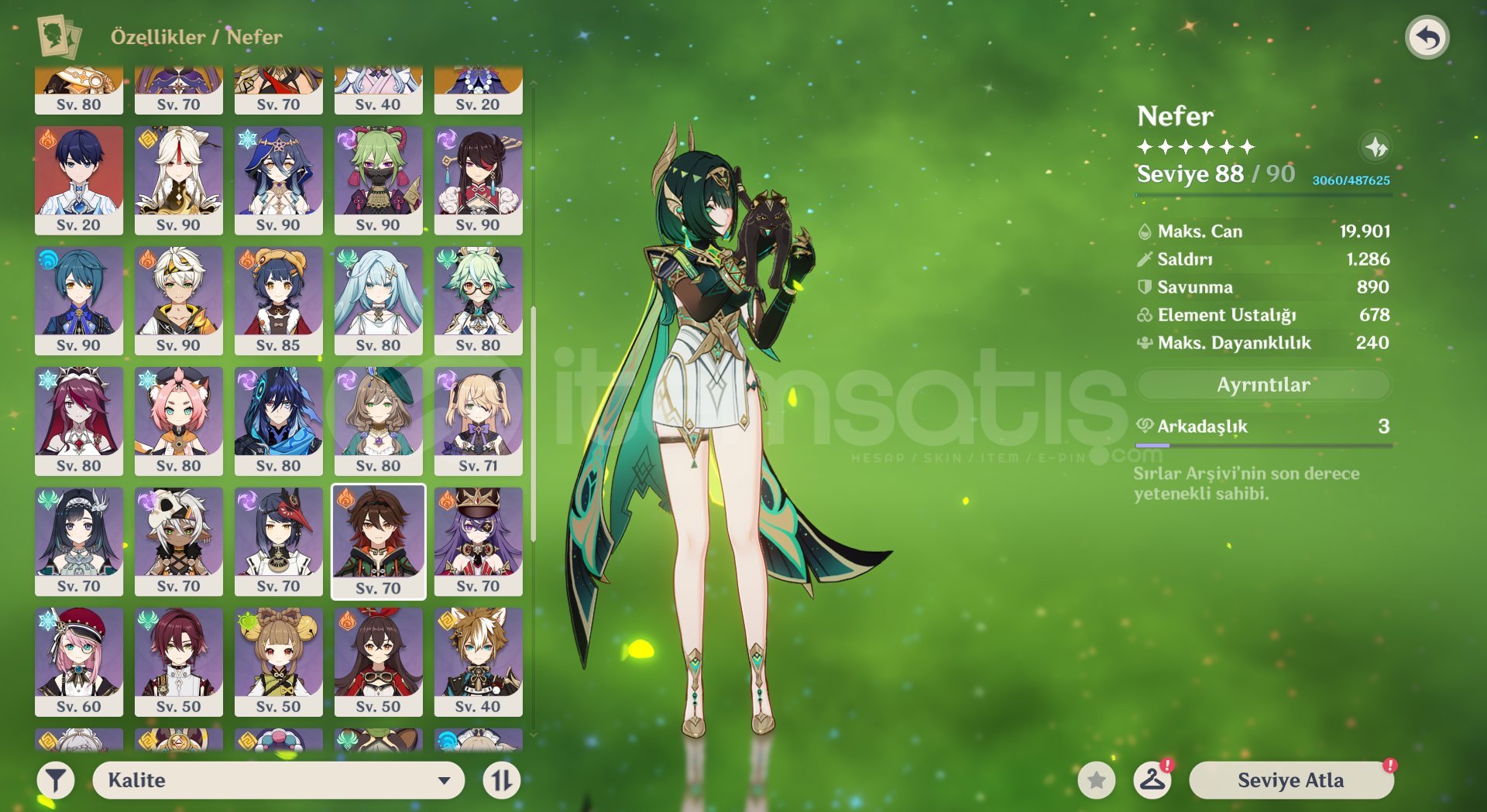 Kendisi main hesabım olur. İhtiyaçtan satıyorum yoksa satanın awk. hesap bal gibi birsürü premium takım var. mavuikanın premium da hazır sadece alması kaldı geçen sefer alamadım.hesaptaki karakterleri yazmicam resimde var zaten çok var sayamam şimdi consları söylicem standartların bide skirkte var ztnHu tao c1e 1 hafta kaldı bu cuma hu tao da c1 oluyoSkirk c1tighnari c4 (tighnarim kasıl...