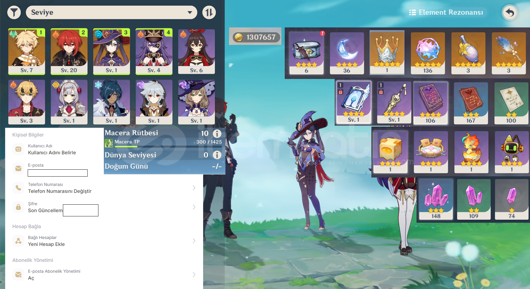 AR10 - Avrupa - Dogum günü eklenebilir - kullanıcı adı eklenebilirHesaplar el ile kasılmıştır hiçbir illegal program kullanılmamıştırDiluc 4.yıldönümünden alınmıştırMona 5. yıldönümünden alınmıştırkarakter pity: 24