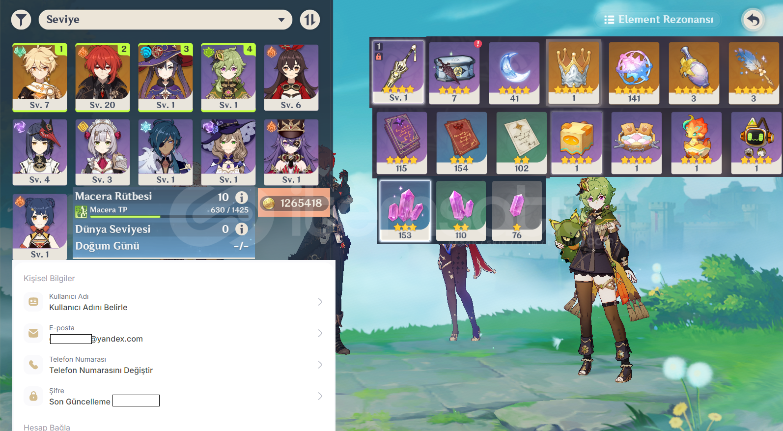 AR10 - Avrupa - Dogum günü eklenebilir - kullanıcı adı eklenebilirHesaplar el ile kasılmıştır hiçbir illegal program kullanılmamıştırDiluc 4.yıldönümünden alınmıştırMona 5. yıldönümünden alınmıştırKarakter Pity: 31