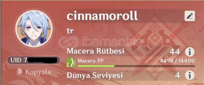 🎮 Genshin Impact Hesabı Satılık – AR44⭐ 5★ Karakterler: Arlecchino, Navia, Yelan, Ayato, Skirk (+3 Standart: Jean, Tighnari, Diluc)📍 Durum Bilgileri:Hükümdar görevi: Inazuma aşamasındaDünya görevlerinin çoğu tamamlandıPrimogem kaynağı bol (keşif yapılmamış bölgeler mevcut)Hesap temiz ve kişisel yan hesabımdır⚙️ Notlar:AR44 olduğ...