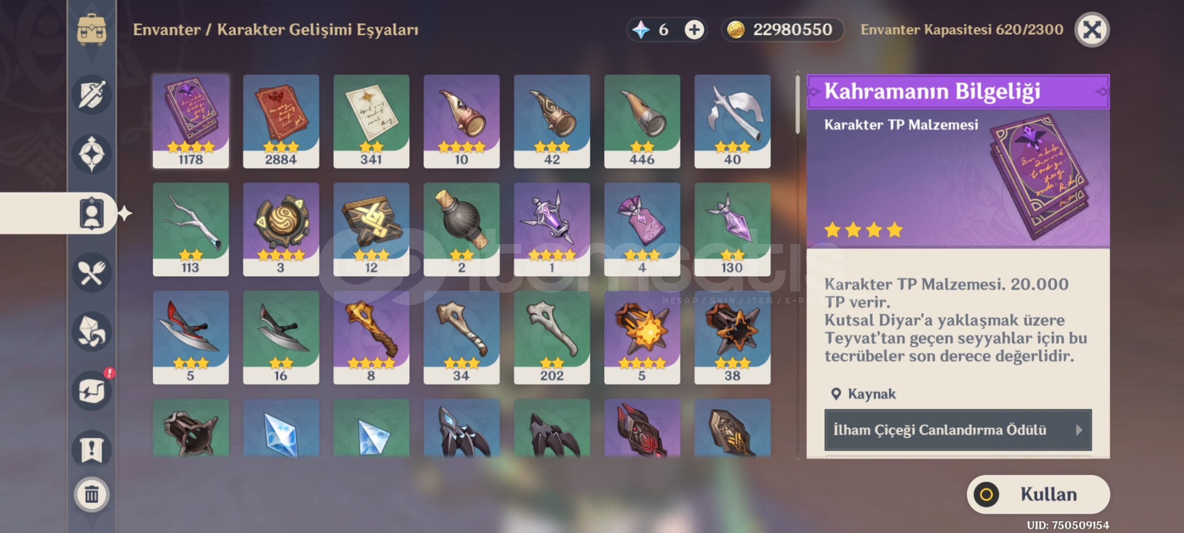 Hesapta 23 milyon mora + 1200 küsur xp kartı vardir istediğiniz karakteri kasabilirsiniz