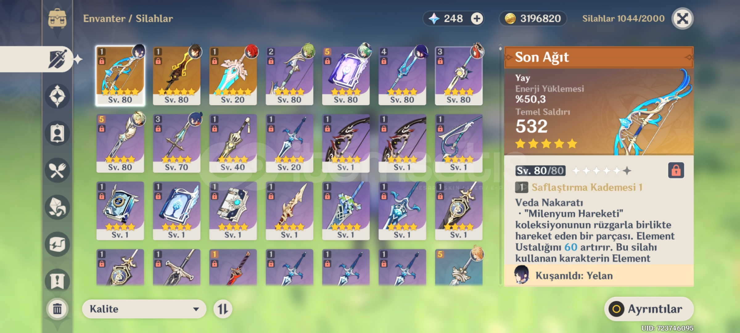 Raiden, Yelan, Zhongli, Qiqi, kepinq, Nilou, DilucHaritanın büyük çoğunluğu duruyor. Semuru bölgesine dokunulmamıştir. Ana görevler ve yan görevler duruyordur fiyat konusunda anlaşabiliriz detaylar için yazın çekinmeyin en önemlisi 60 taş var.