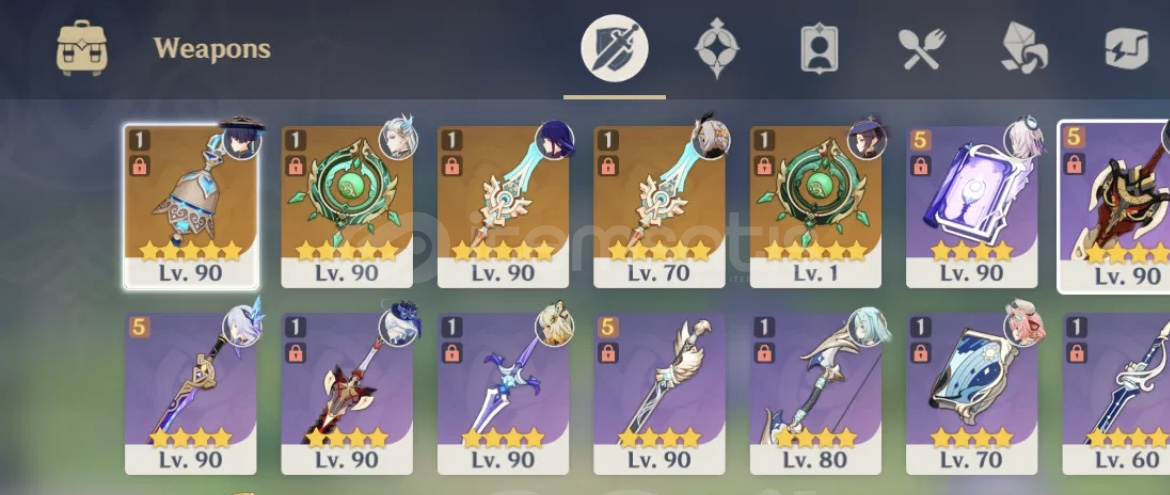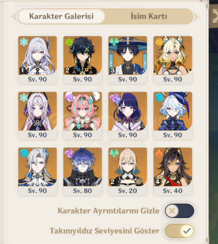 • 5 yıldızlı karakterler (Cons levelleri) ve silahlar (Refine aşamaları) şu şekildedir;