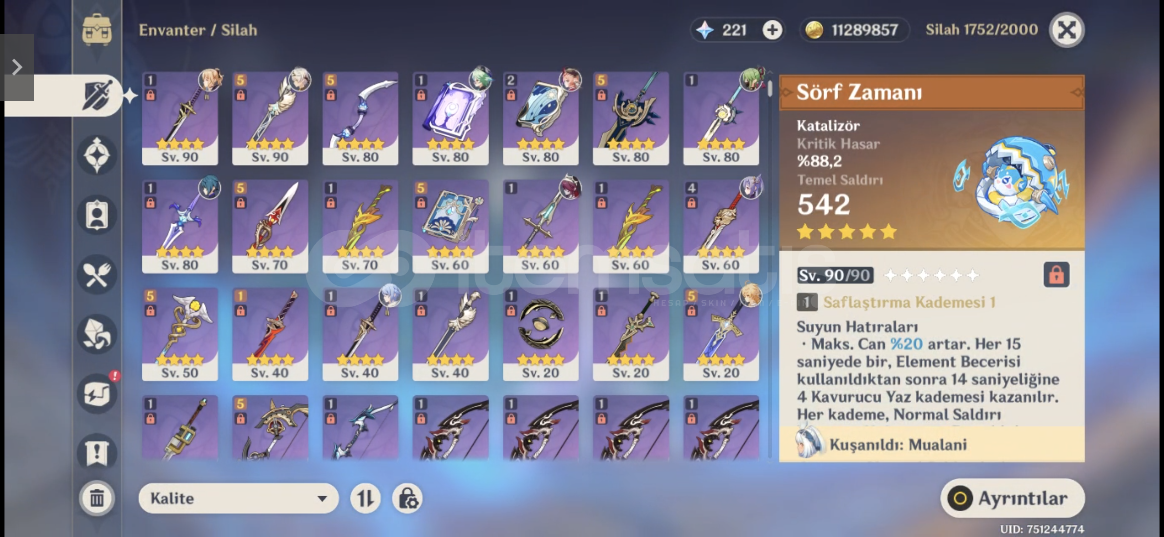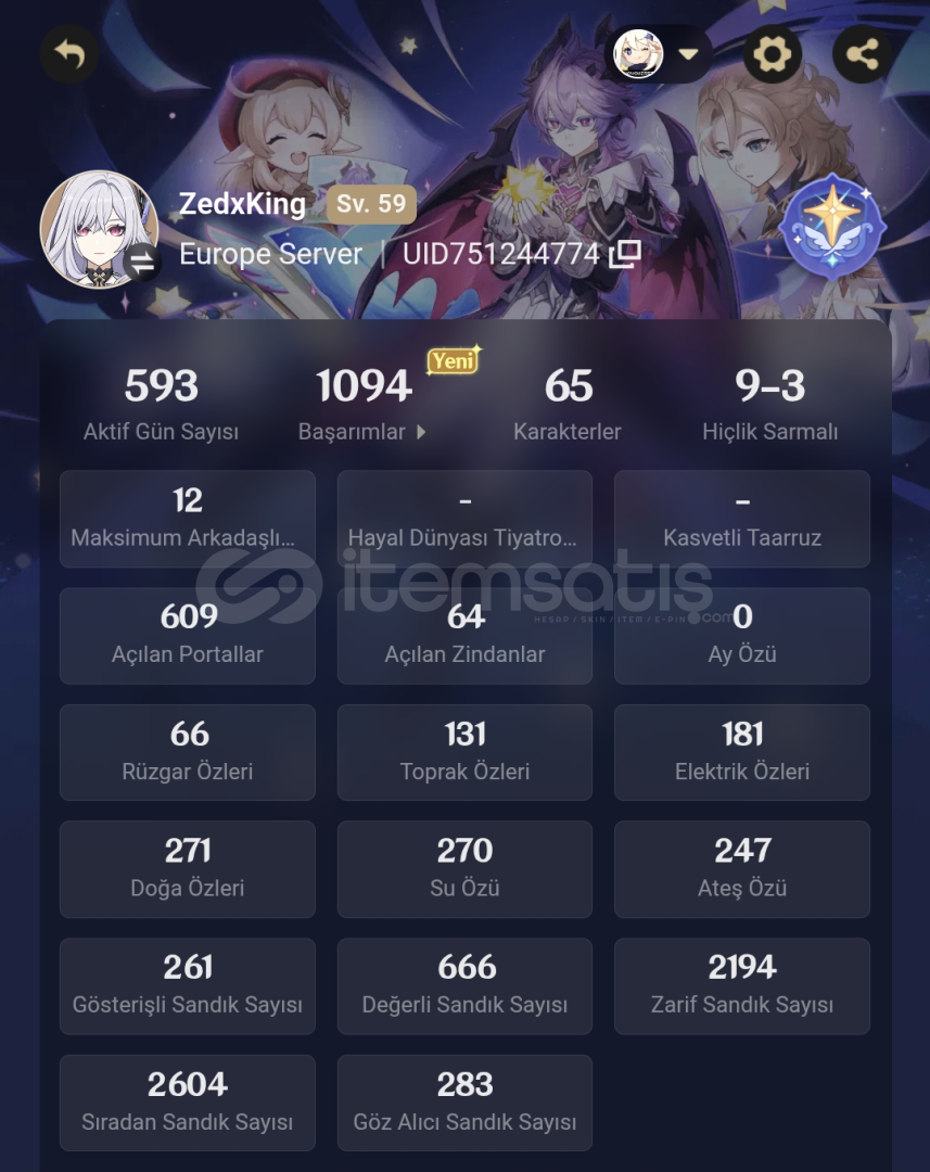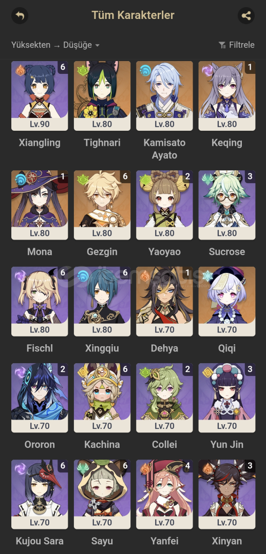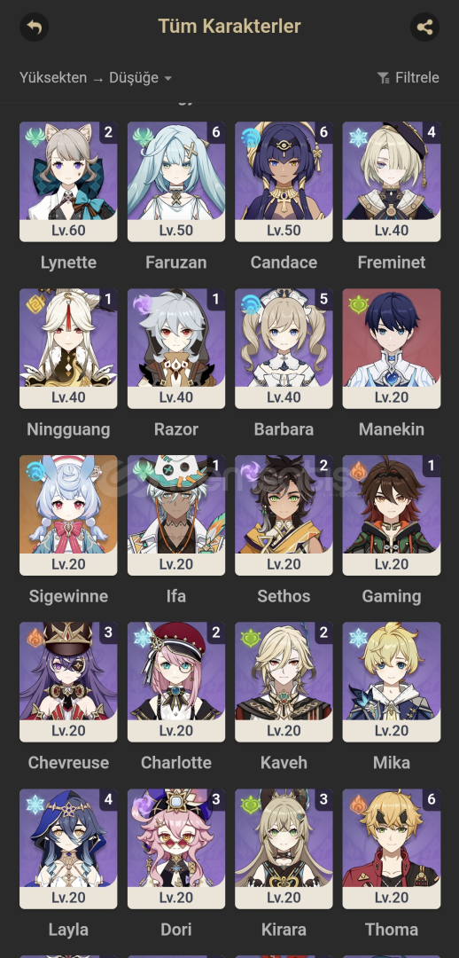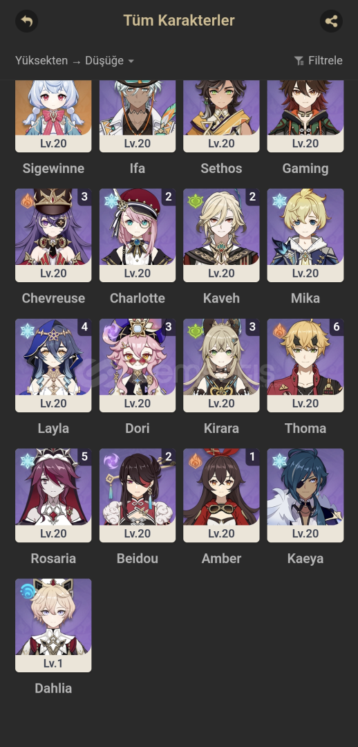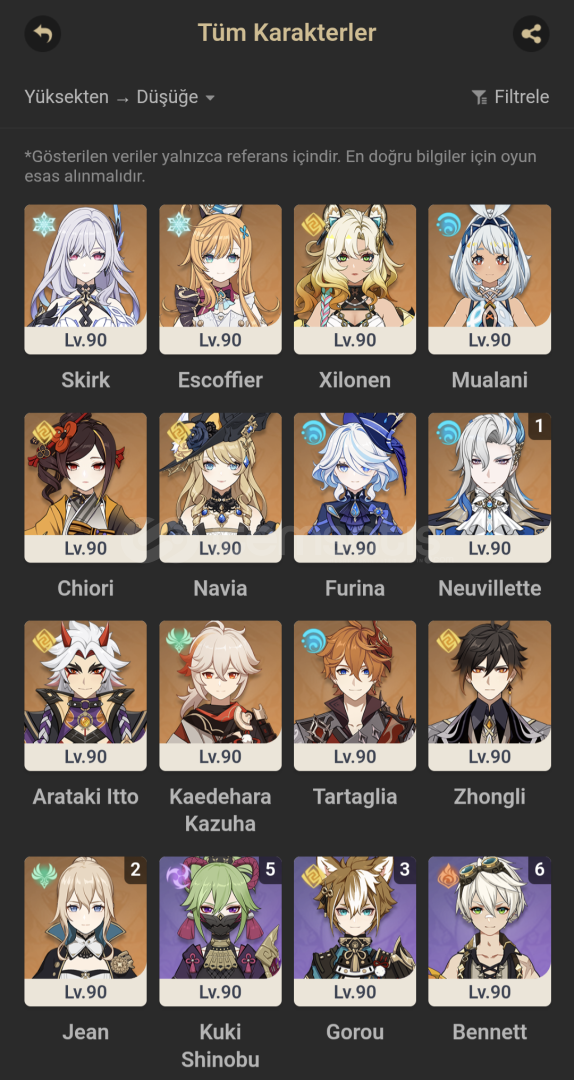 Skirk + Kendi silahıXilonen + Kendi silahıC1 Neuvillette + Kendi silahıKazuha + Kendi silahıChiori +Kendi silahıMualaniFurinaTartagliaAyatoSigewinneVe sıradan 5 yıldızlılar vardır yeni gelen bölge hariç her yer bitmiştir mail değişimi konusunda yardımcı olunacaktır pazarlık yaparız