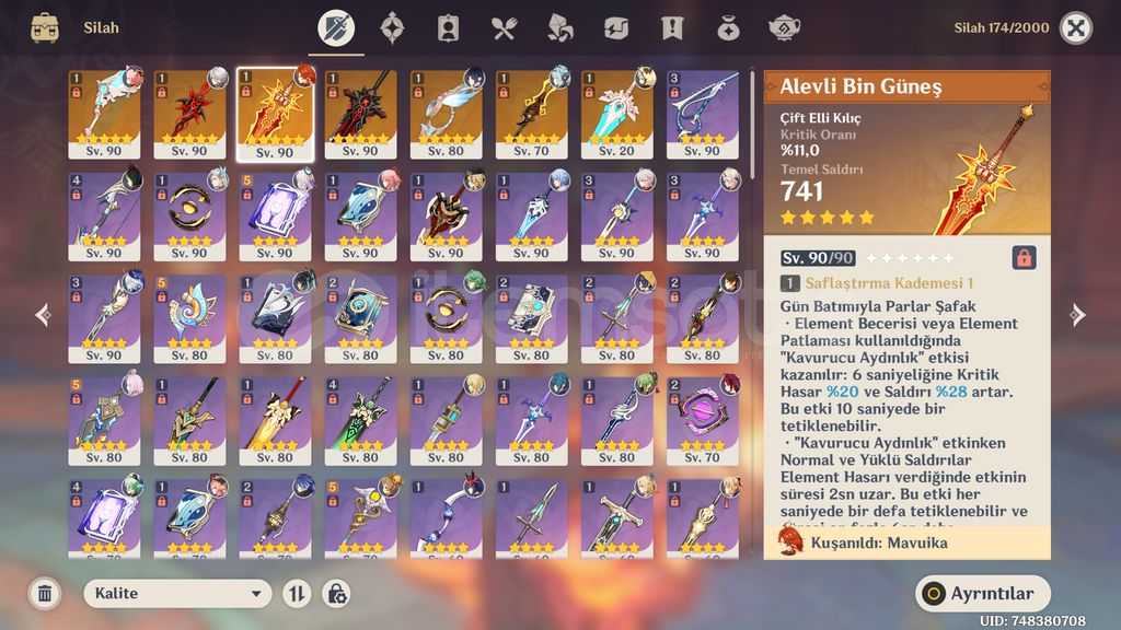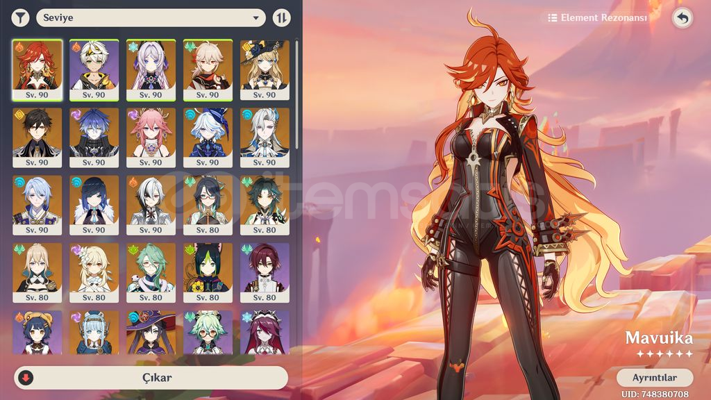 Flins Ineffa Mavuika İmza Silah Arlecchino İmza Silah Yelan Furina Navia Neuvillette Kazuha Zhongli İmza Silah Xianyun Citlali Ayato Xiao Yae Miko Baizhu Dehya Jean C2 Tighnari C1 Mona C1 Keqing C1 Qiqi