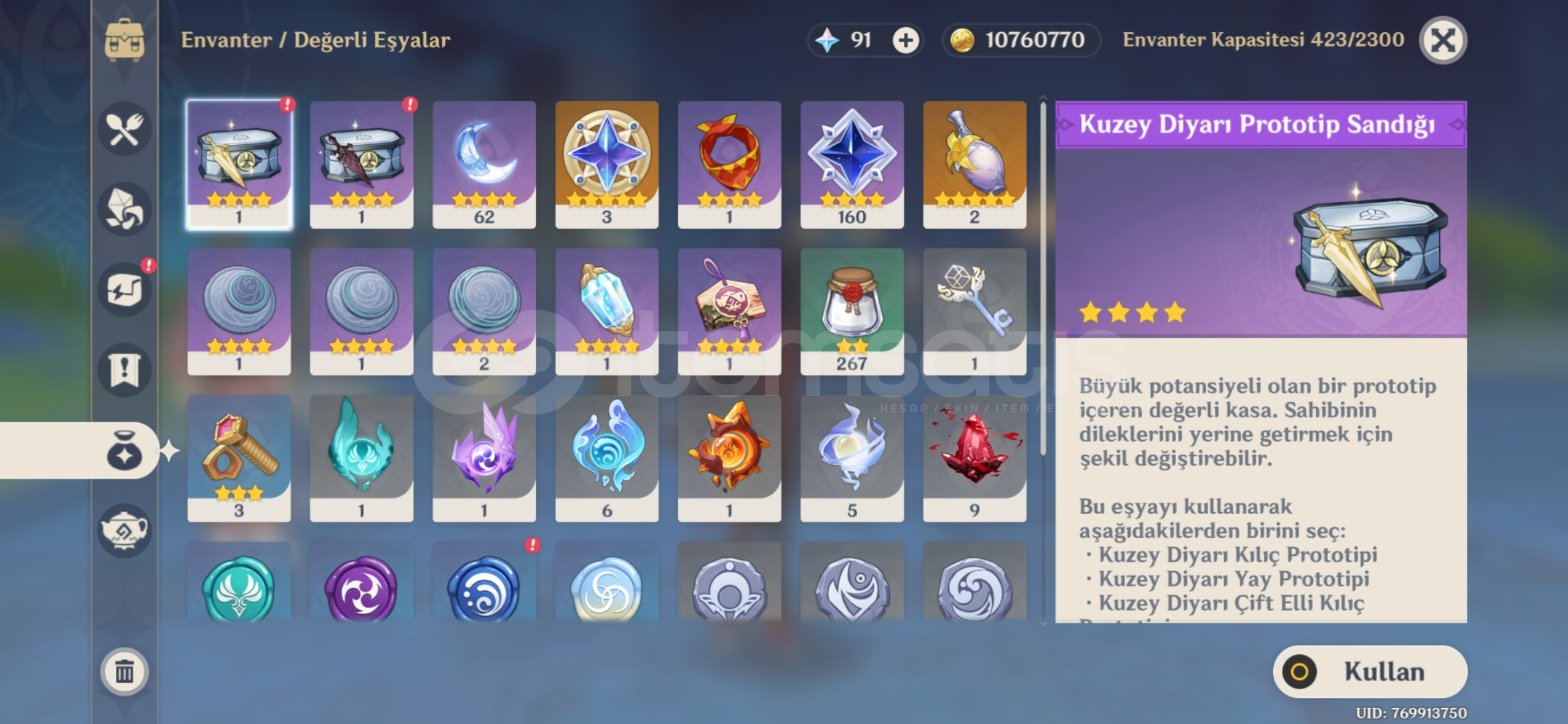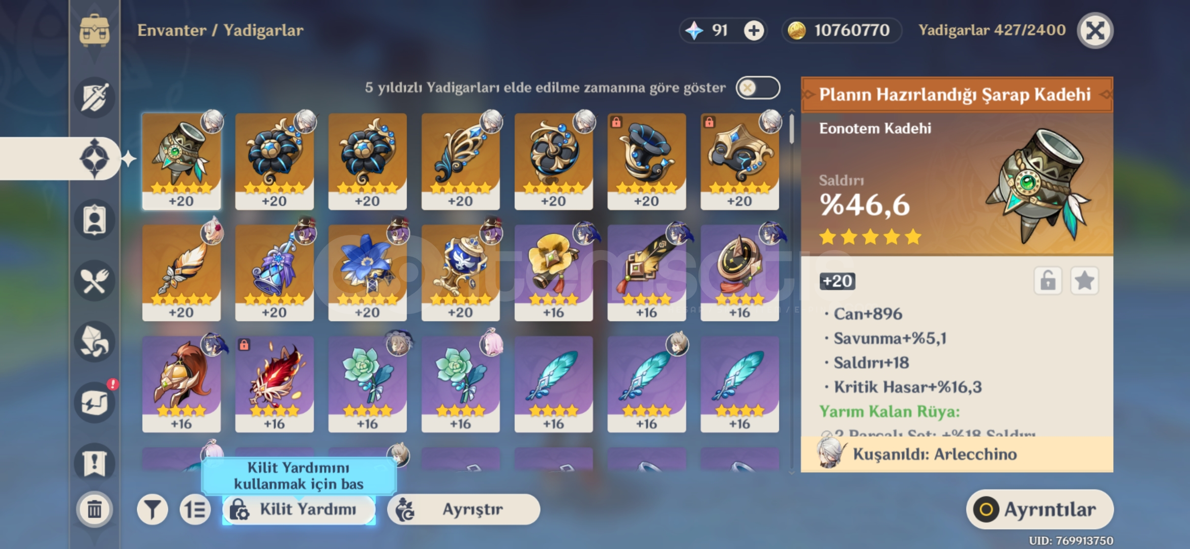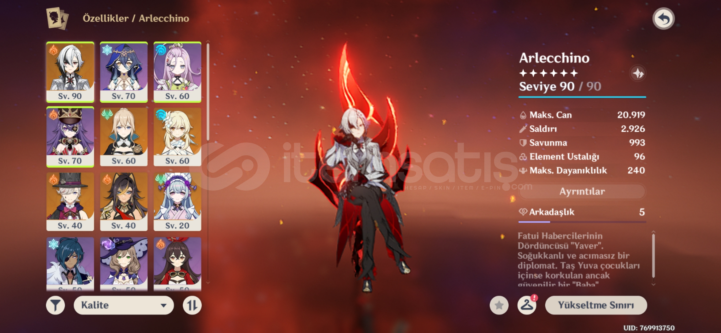 Arlecchino ve Silahi vardır.Hasar oranı çok çok iyi.2.900 saldırı gücü var.Pity 65Harita keşif oranları resimlerde mevcuttur.