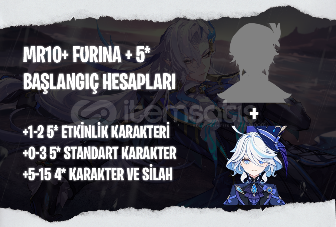 Bu ilanı satın aldığınızda MR10+ seviyesinde içerişinde Furina + 1-2 adet rastgele 5* etkinlik karakteri bulunan bir hesap tarafınıza iletilecektir.
