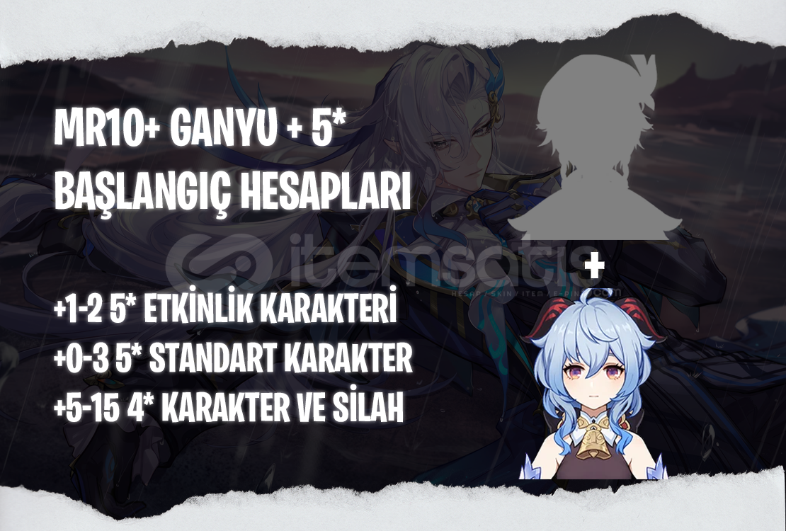Bu ilanı satın aldığınızda MR10+ seviyesinde içerişinde Ganyu + 1-2 adet rastgele 5* etkinlik karakteri bulunan bir hesap tarafınıza iletilecektir.Hesapların içerişinde 0-3 adet 5* standart karakter içerebilir.Hesapların içerişinde bir miktar köken taşı bulunabilir.Tüm hesaplarımız garantilidir ve alım sonrası kullan...