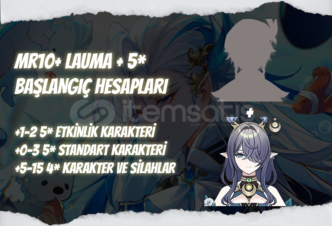 Bu ilanı satın aldığınızda MR10+ seviyesinde içerişinde Lauma + 1-2 adet rastgele 5* etkinlik karakteri bulunan bir hesap tarafınıza iletilecektir.Hesapların içerişinde 0-3 adet 5* standart karakter içerebilir.Hesapların içerişinde bir miktar köken taşı bulunabilir.Tüm hesaplarımız garantilidir ve alım sonrası kullan...