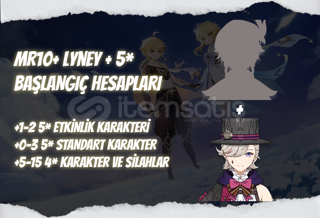 Bu ilanı satın aldığınızda MR10+ seviyesinde içerişinde Lyney + 1-2 adet rastgele 5* etkinlik karakteri bulunan bir hesap tarafınıza iletilecektir.Hesapların içerişinde 0-3 adet 5* standart karakter içerebilir.Hesapların içerişinde bir miktar köken taşı bulunabilir.Tüm hesaplarımız garantilidir ve alım sonrası Kullan...