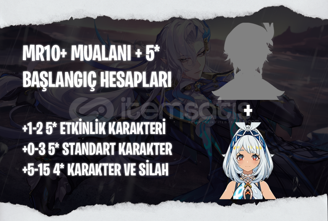 Bu ilanı satın aldığınızda MR10+ seviyesinde içerişinde Mualani + 1-2 adet rastgele 5* etkinlik karakteri bulunan bir hesap tarafınıza iletilecektir.Hesapların içerişinde 0-3 adet 5* standart karakter içerebilir.Hesapların içerişinde bir miktar köken taşı bulunabilir.Tüm hesaplarımız garantilidir ve alım sonrası kullan&#...
