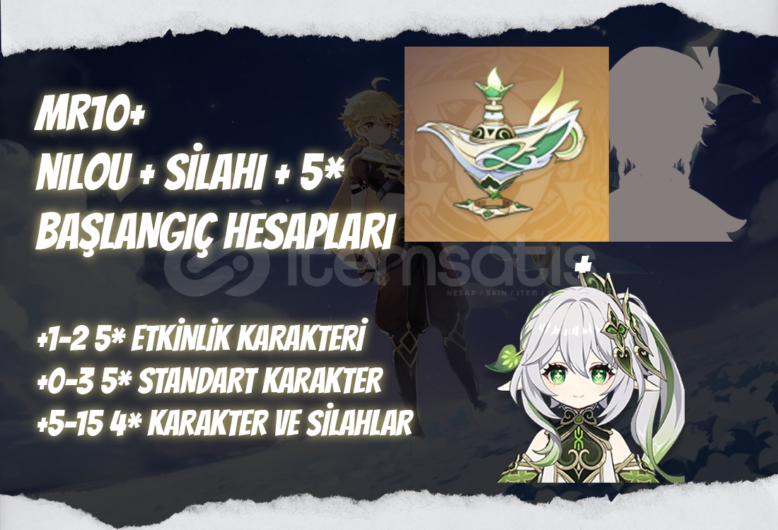 Bu ilanı satın aldığınızda MR10+ seviyesinde içerişinde Nahida + kendi silahı + 1-2 adet rastgele 5* etkinlik karakteri bulunan bir hesap tarafınıza iletilecektir.