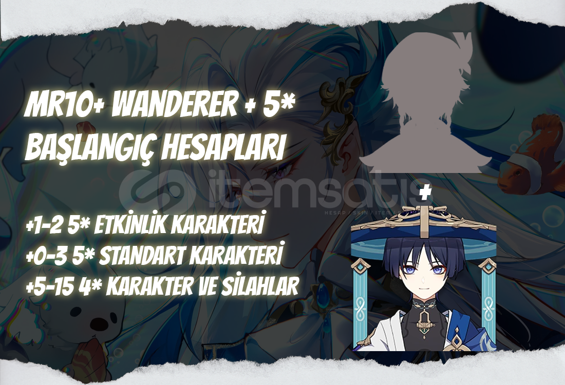 Bu ilanı satın aldığınızda MR10+ seviyesinde içerişinde Wanderer + 1-2 adet rastgele 5* etkinlik karakteri bulunan bir hesap tarafınıza iletilecektir.Hesapların içerişinde 0-3 adet 5* standart karakter içerebilir.Hesapların içerişinde bir miktar köken taşı bulunabilir.Tüm hesaplarımız garantilidir ve alım sonrası kullan&...