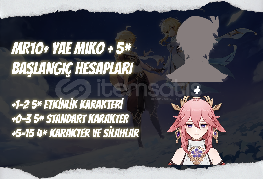 Bu ilanı satın aldığınızda MR10+ seviyesinde içerişinde Yae Miko + 1-2 adet rastgele 5* etkinlik karakteri bulunan bir hesap tarafınıza iletilecektir.