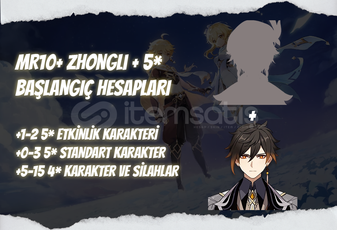 Bu ilanı satın aldığınızda MR10+ seviyesinde içerişinde Zhongli + 1-2 adet rastgele 5* etkinlik karakteri bulunan bir hesap tarafınıza iletilecektir.