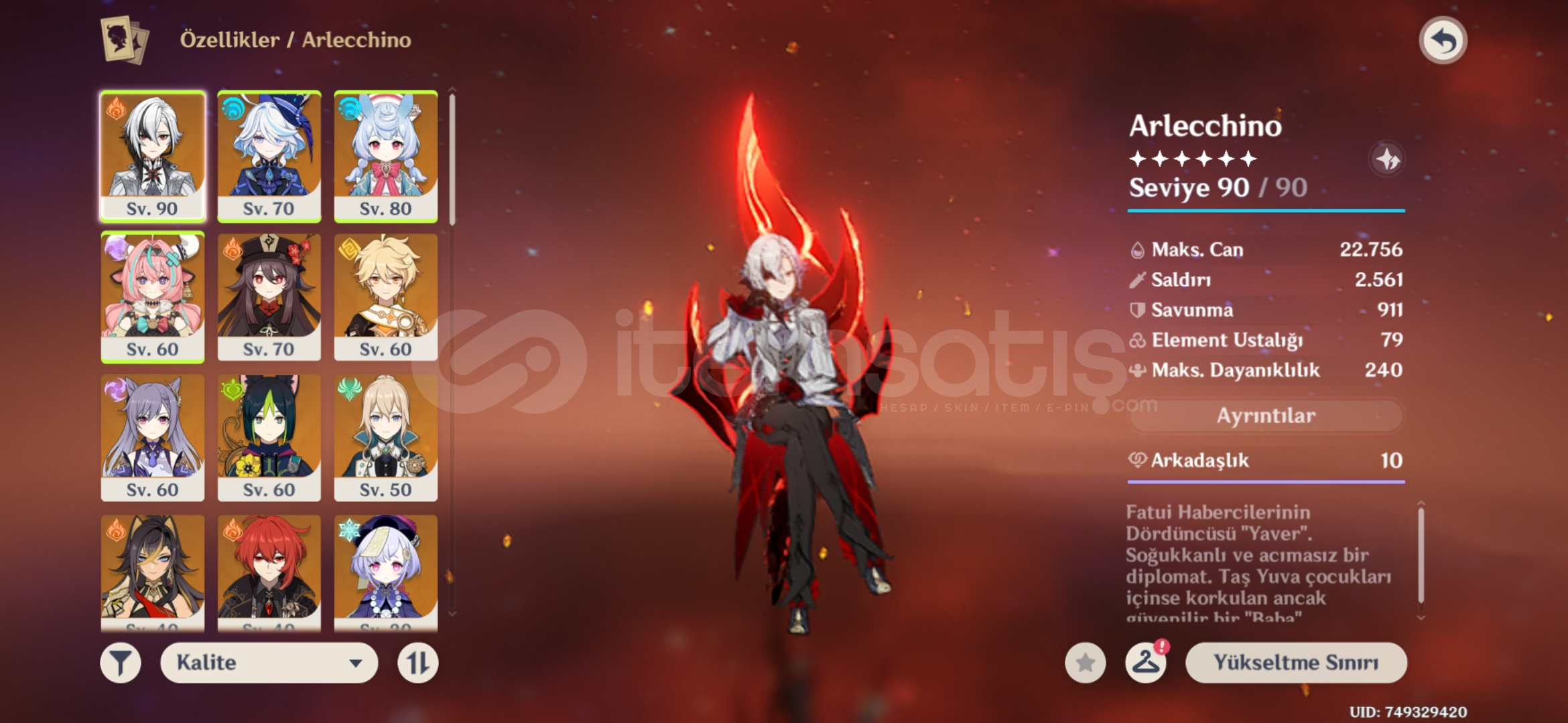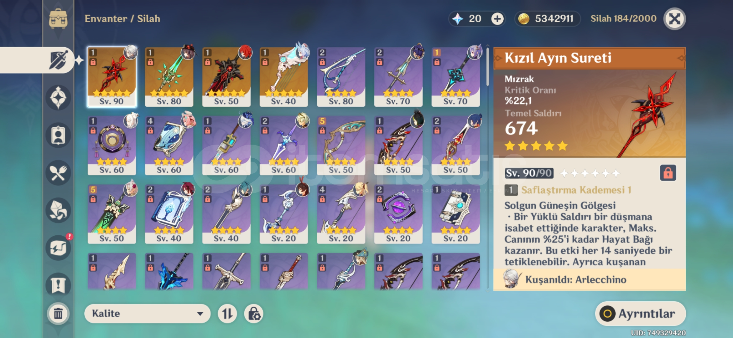 Hesapta C1 Arlecchino ve SilahiSigewinne ve Göklerin LiriVaressaHuo TaoFurina ....Pity 65 rate up varHaritalar bos sayılır.Recine 25 tane var .Detay icin yazınız. Pazarlık sünnettir.