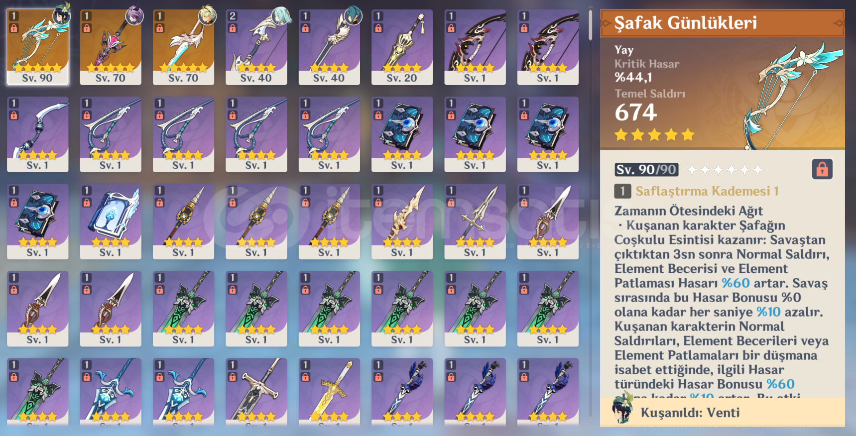 E-posta bağlı değil direkt üstünüze alabilirsinizHesapta C1 Durin ve Venti vardır fakat yadigarları kasılı değilDurin imza silahı ve Venti imza silahı var Bennett'te de Favonia Kartlaı varDurin Bennet ve Faruzan ı 90 yapacak malzeme var sadece toplanacak malzemeler eksik74 pity Rate-Up yok hesapta 18 Wish var