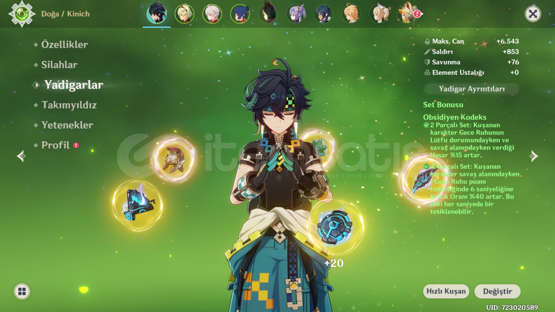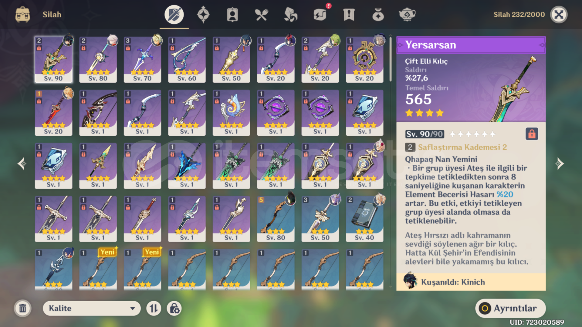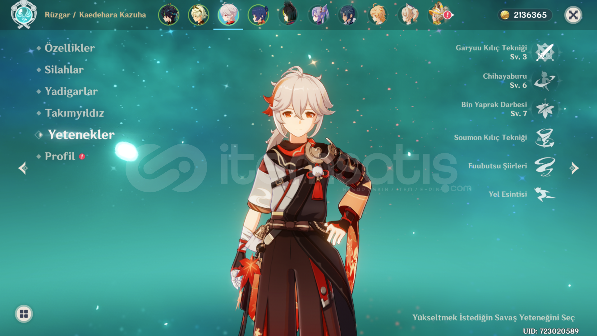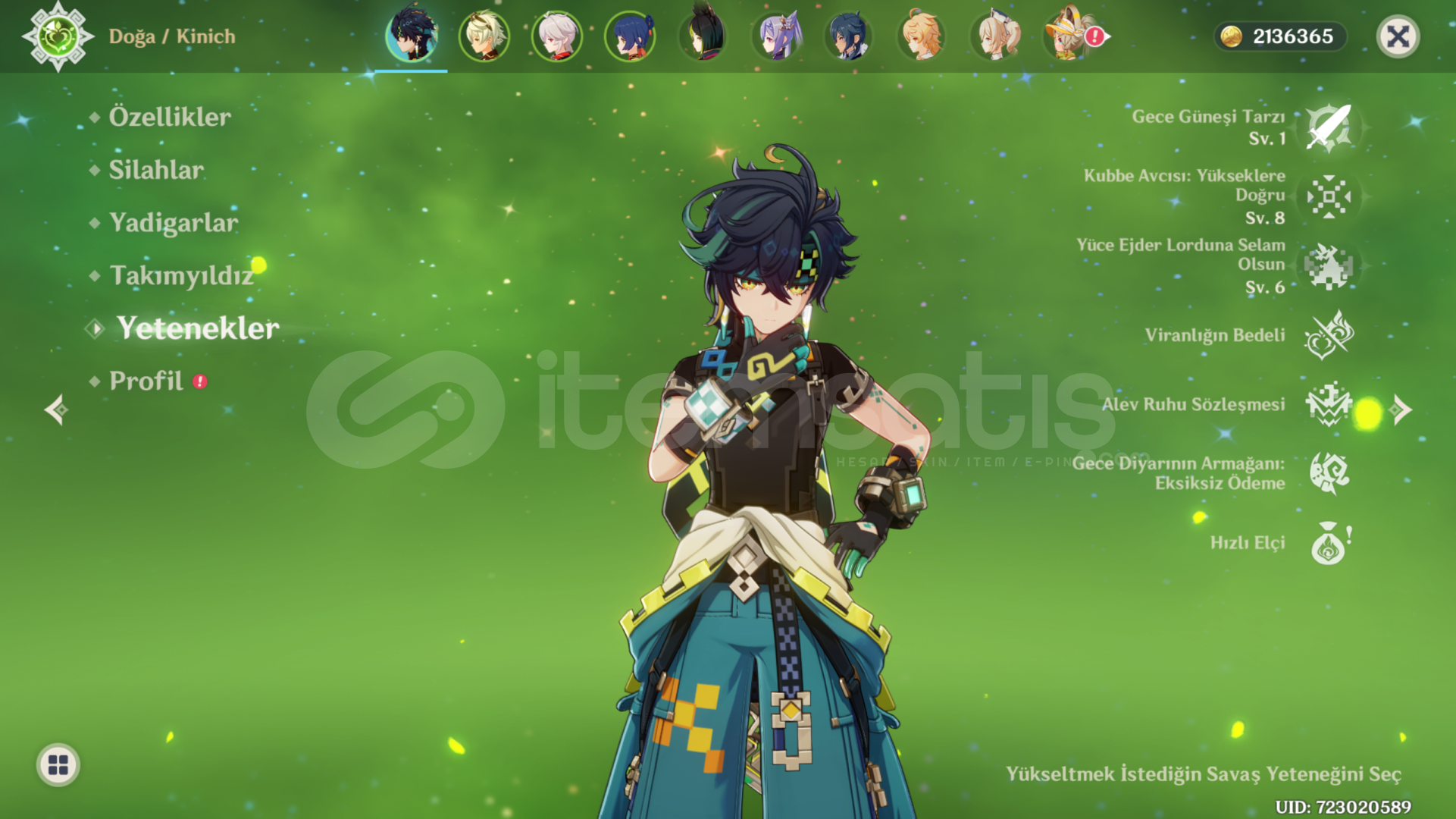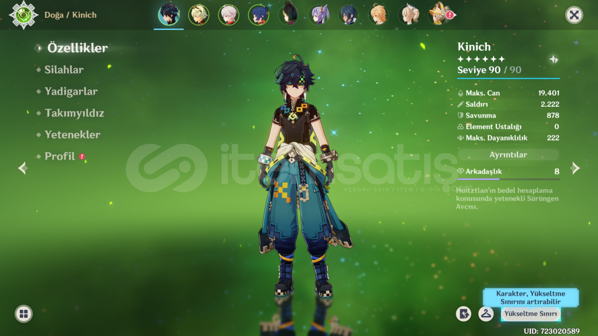 Hesap kişisel hesabımdır ilk sahibiyim oynamadığım için satıyorum, önemli olarak kinich ve kazuha 5* ayrıca kinich 1 constellation'dur.Kinichin buildi ve halihazırda bulunan takımın buildi güzel ve hasarı yüksektir, herhangi bi mobu fazlaca zorlanmadan kesebilirsiniz. Herhangi bi sorunuz için yazabilirsiniz. Eposta değişimi yapılacaktır.