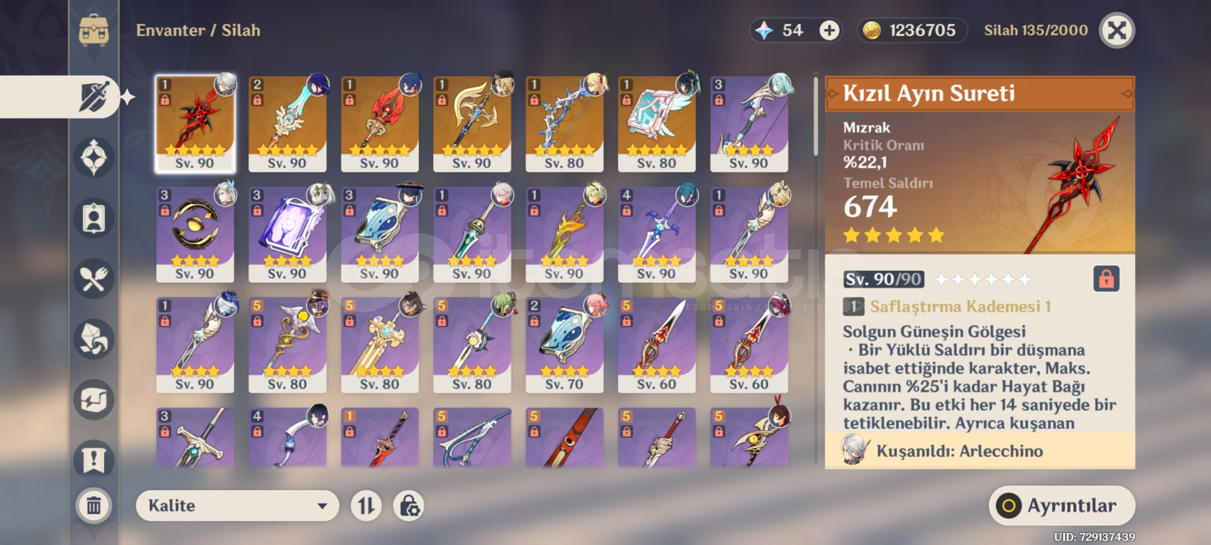 Hesap çok çok çok güzel 120+ kasılı artifact var buildlerime bakabilirsiniz rosaria için catch almaya çalışıyorum bunun dışında hesap çok güzel karakterler 4* dahil olmak üzere çok iyi kasılı biraz daha zorlasam abyss 12-3 sabrım kalmadığı için 11-3 e kadar yapıp saldım uğraşırsınız yapılabilir Aynı zamanda hsr heaabıda var hesabımın Evernight+LC castrorice ve 98 FUEL var hesapta pityim 40 larda suanda bayağı bir yapacak içerik var 2 hesaptada fiyatı ona göre değerlendirirseniz sevinirim HSR uid side 701027458 BLADE KAFKA FU XUAN EVERNİGHT+LC CASTRORİCE TL65