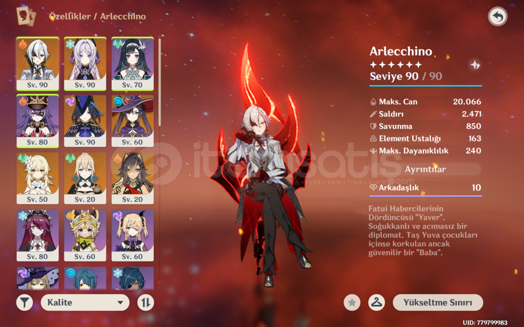 Resimdeki 5 yıldızlar arleccino c1r1 çok iyi buildli C1 arleccino ve silahı Clorinde ve silahı CitlaliC6 chevruse c6 lanyan c6 rosaria55 pity karakter 17 pity silah