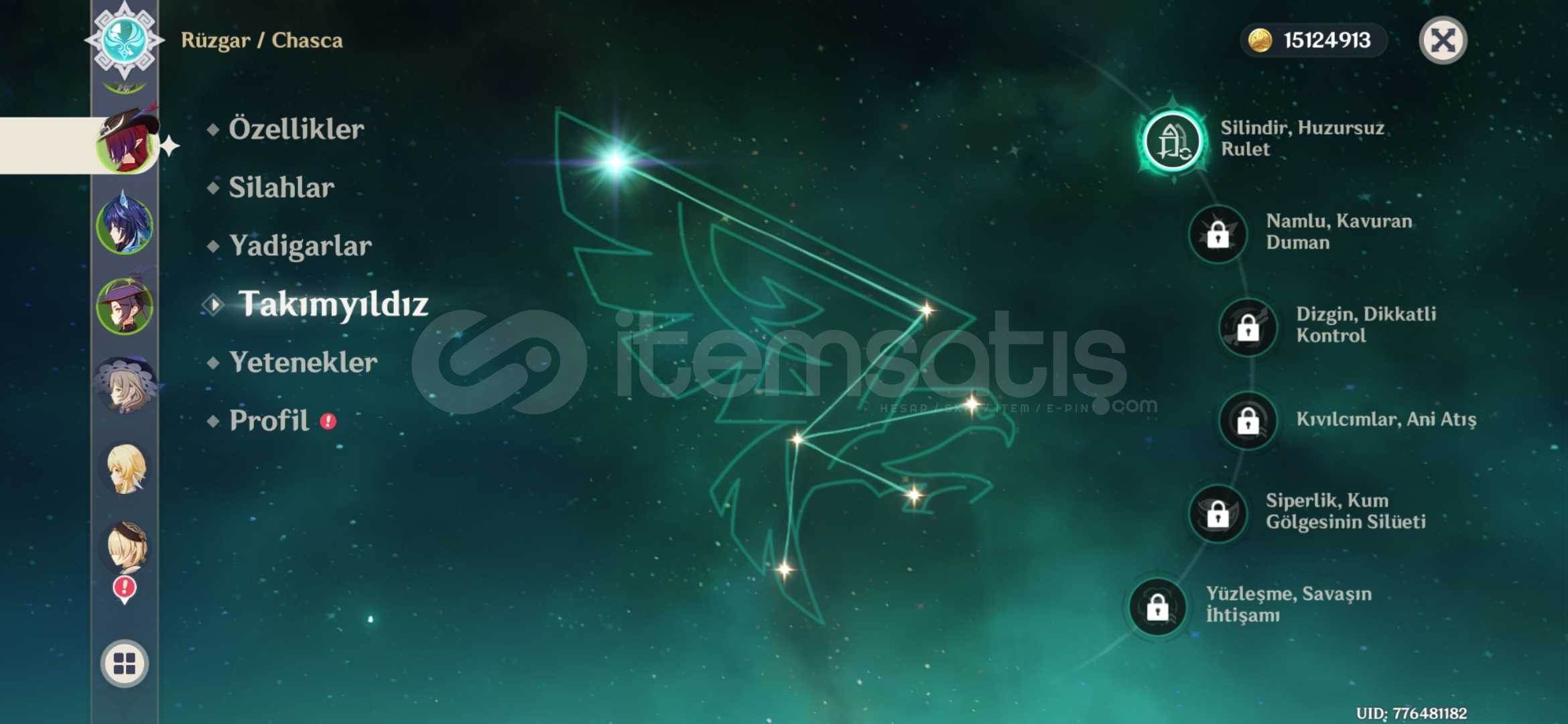 Hesabın içinde 3 tane 5 yıldızlı silah vardır4 yıldızlı takım yıldızı olarakC6 ororonC4 sucroseVe garanti 5 yıldızlı karakter görüyordur 60 Pity 12 wish vardır