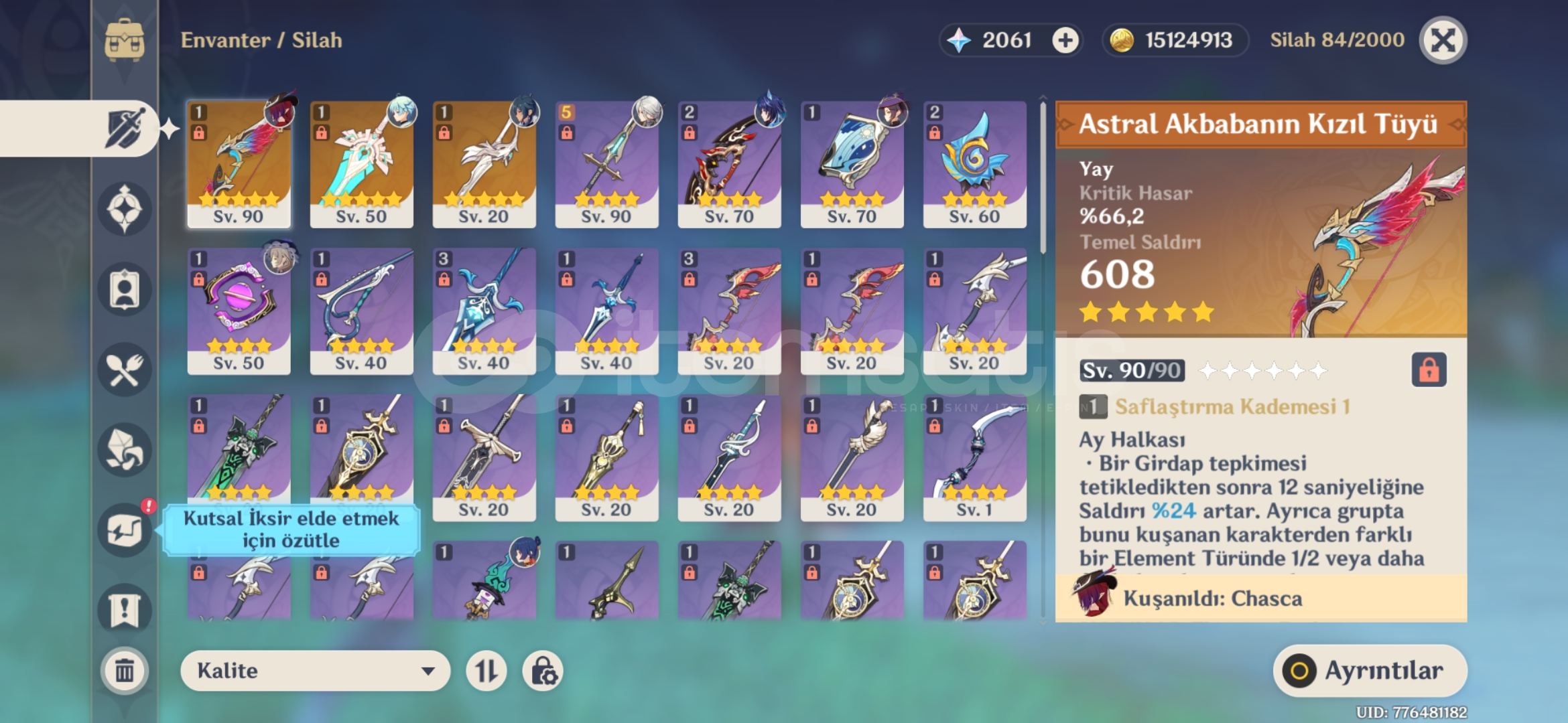 Hesabın içinde 3 tane 5 yıldızlı silah vardır