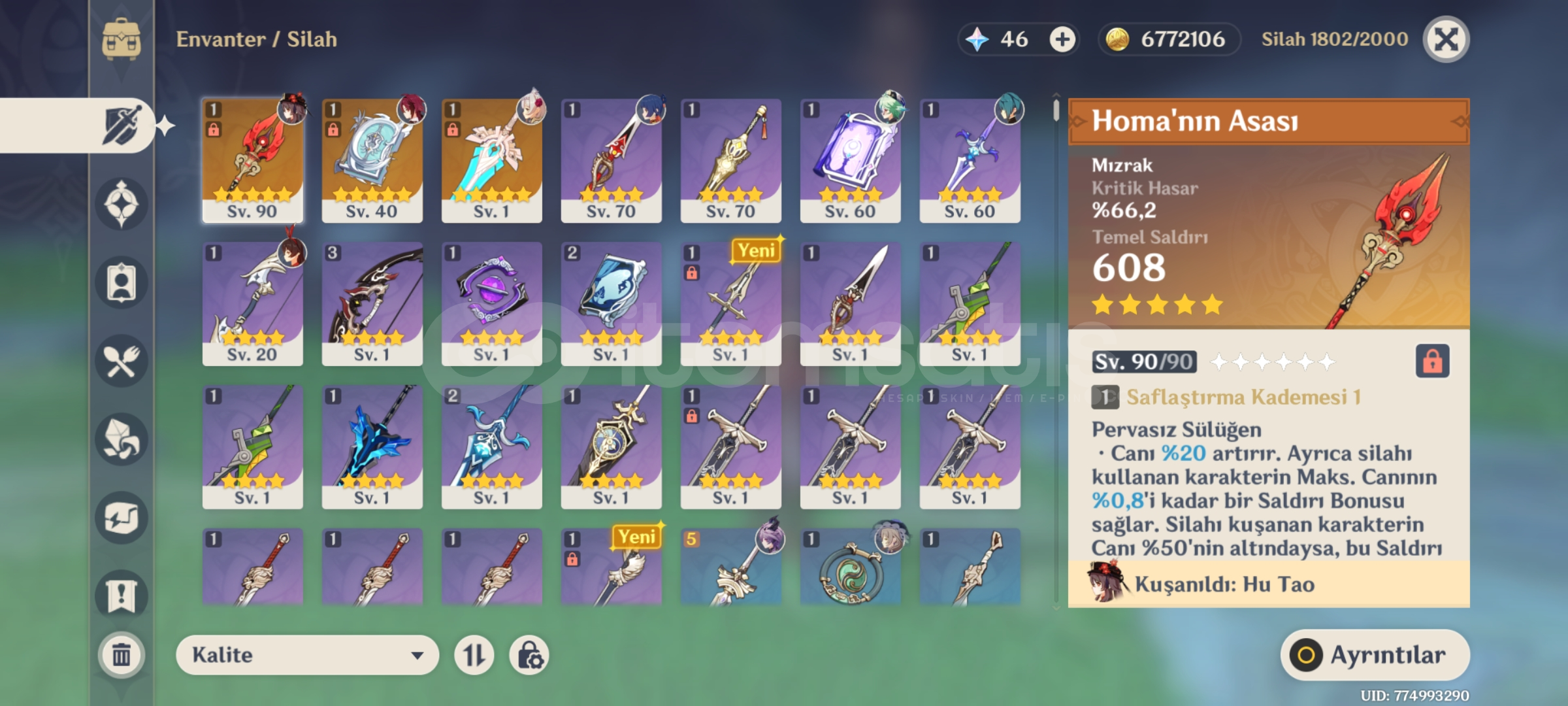 Hesapta c1r1 hutao durun thignari 3 tane beş yıldızlı silah vardır sunucu avrupadir sorunuz varsa DM atabilirsiniz