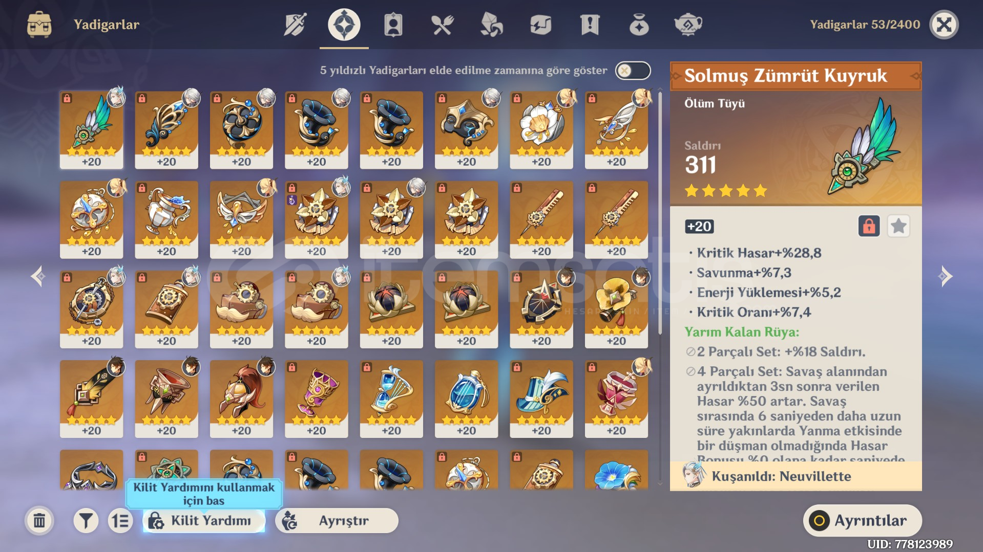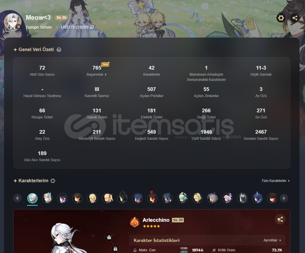 Natlan ve Nod Kraiye Nerdeyse dokunulmamıştır onun dışında kalan yerler oynamıştır.Karakter Hikaye Görevlerinin Hiçbiri Yapılmamıştır.Abbys Başlangıç Hesabıdırİndirim Konuşula bilir.Fotoğraflarda her detay vardır ama dm den yine hesapla ilgili sorular sorabilirsiniz----------------------C2R2NeuvilletteC0 ArlecchinoC0 YelanC0R1 ZhongliC1 MonaC0 QiqiC0 Yumemizuki MizukiC0 Jea...