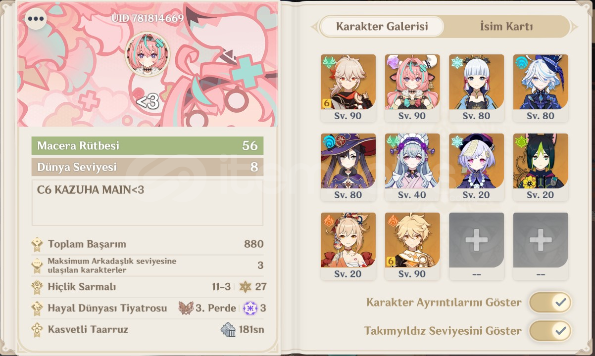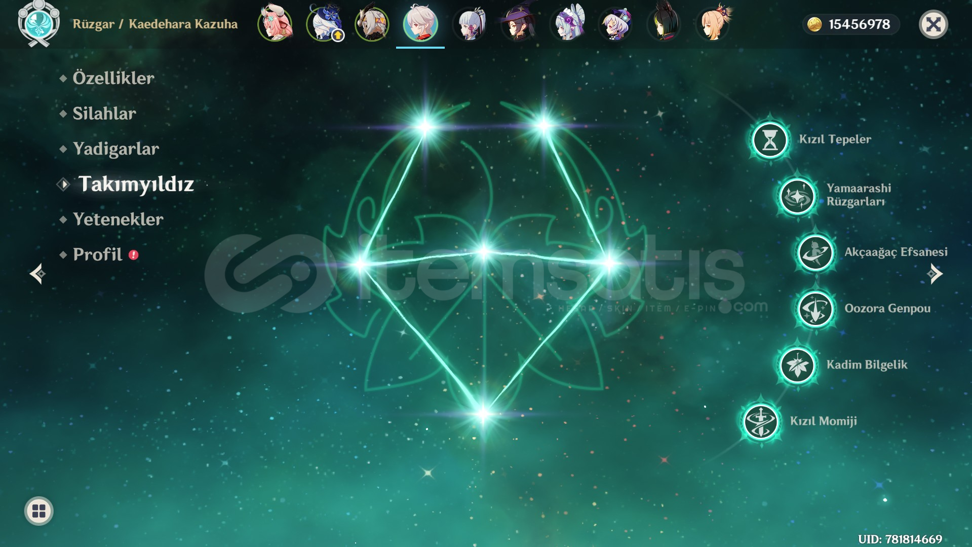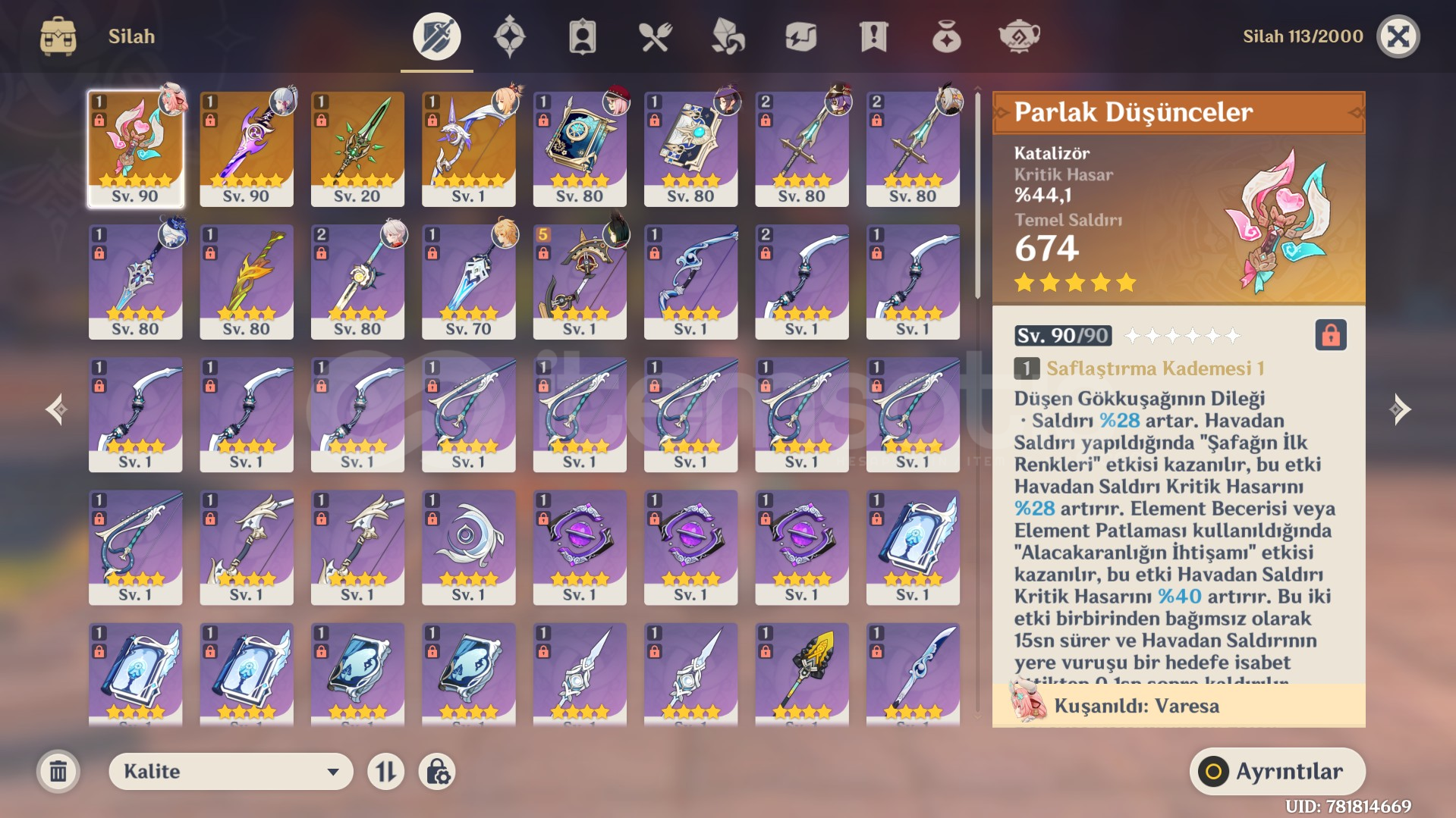 5* KARAKTERLER---------------------C6 KAZUHAVARESAAYAKAFURİNAYOİMİYAMONAYUMEMİZUKİQİQİTİGHNARİ---------------------------------5* SİLAHLAR---------------------------------VARESANIN SİLAHIAYAKANIN SİLAHIXİAONUN MIZRAGIAMOS`UN YAYI---------------------------------NOD KRAİ HİÇ YAPILMADI NERDEYSEDİĞER KISIMLAR 80 CİVARI---------------------------------BİR KERE BATTLE PASS AÇILDI GÜNCEL A...