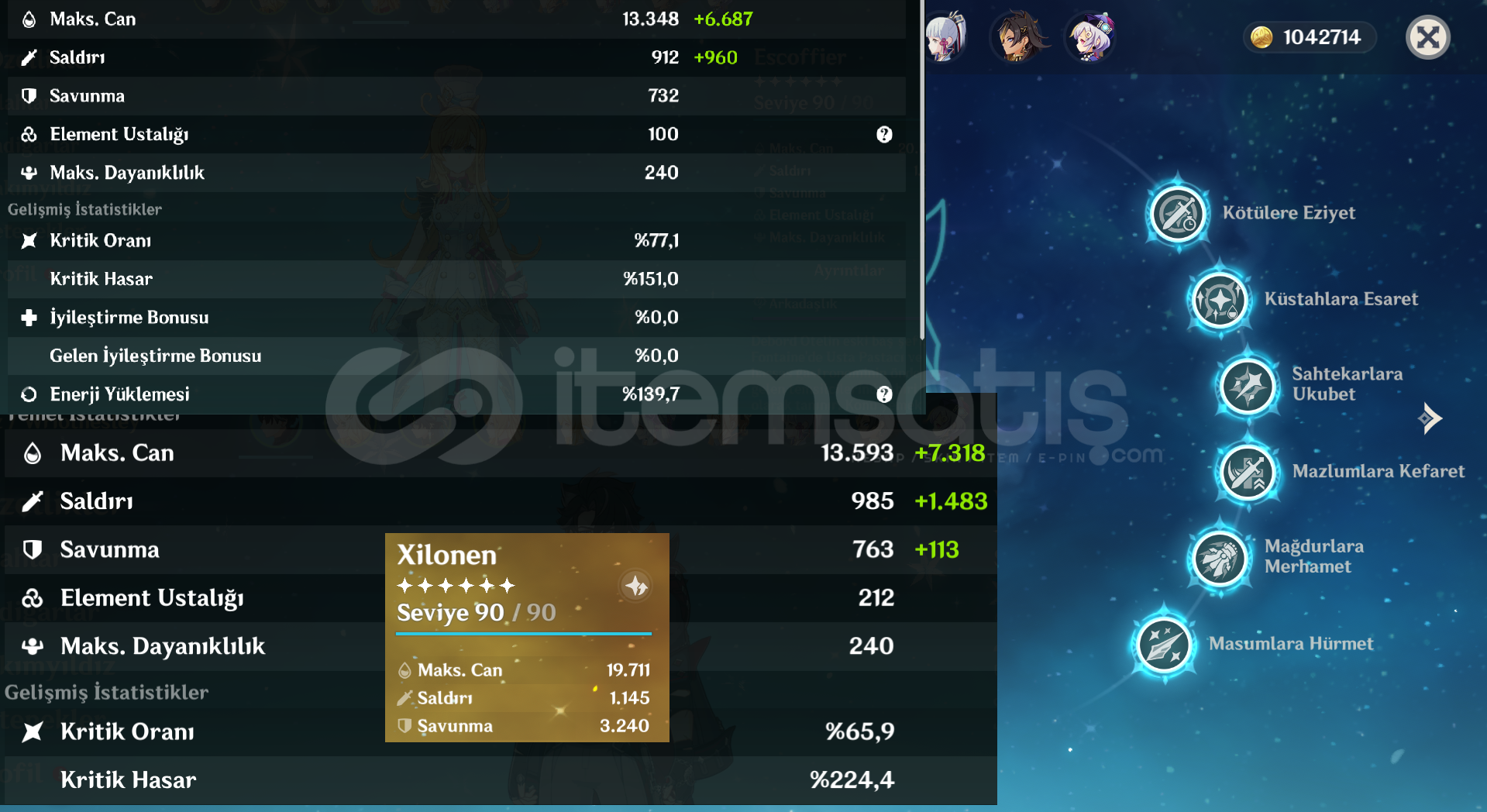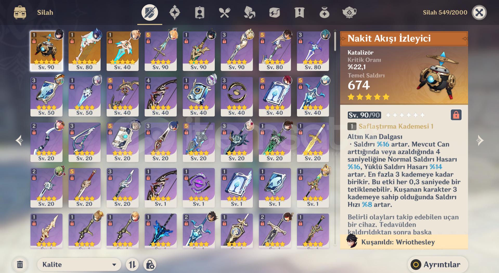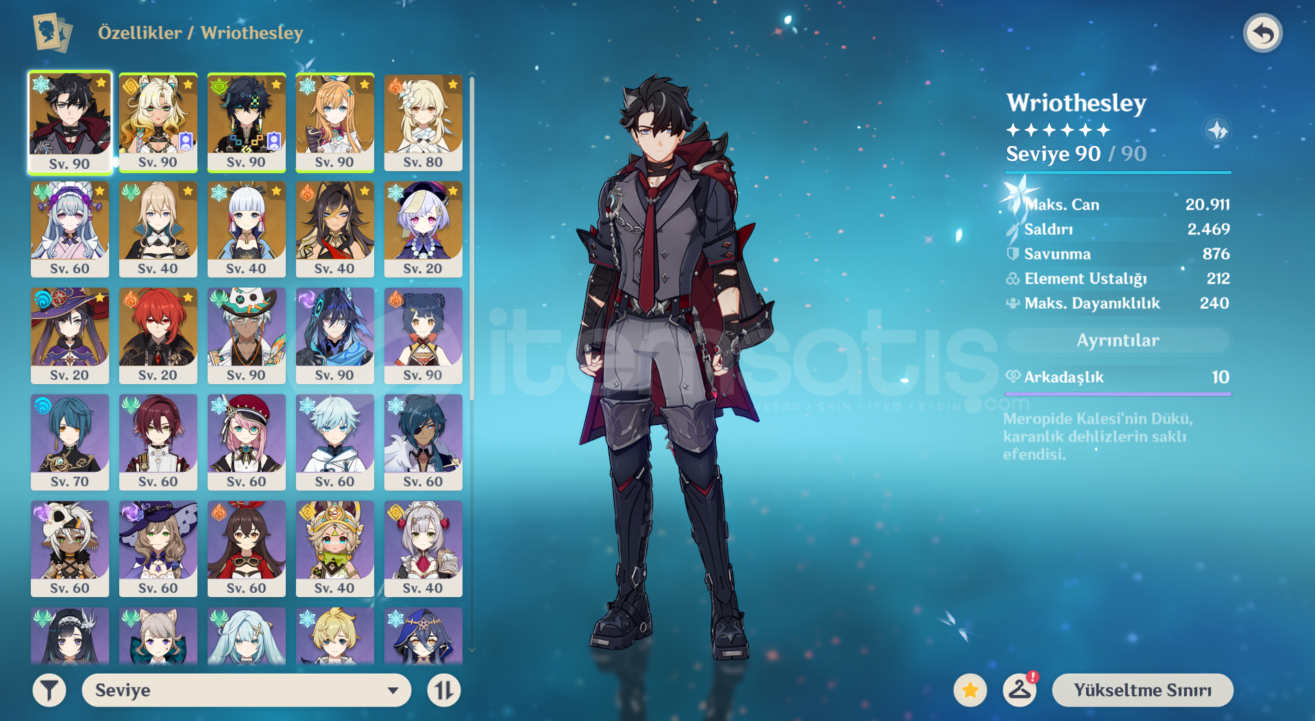 AR57 EU sunucusu. Godlike bir Wriothesley hesabıdır. Kendi silahı ve en iyi supportları bulunmaktadır. Karakter banner pitysi 72dir ve rate up vardır. Furina alıp takımı tamamlayabilirsiniz!Outlook maili teslimatıyla sağlanacaktır.Nod kraiye hiç girilmedi, diğer map yüzdeleri yüksek.Silah pity 7Character pity: 72