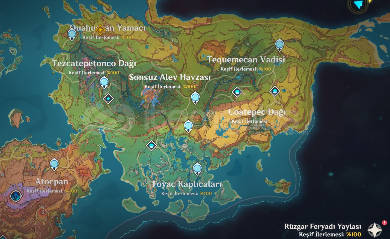 HARİTA FULL OLAN YERLER : MONDSTADT , NATLAN