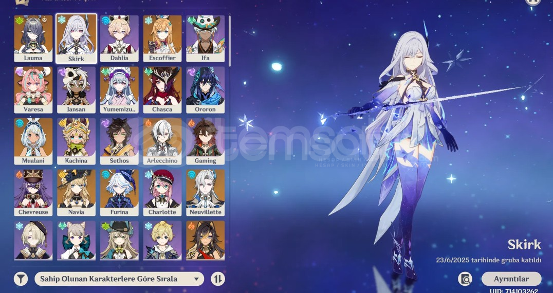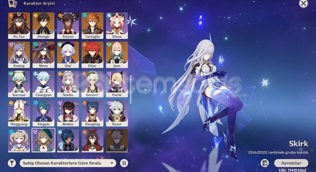 Ana hesabım çok acil satılıktır. Alan kişiye bir ay welkin hediye. Hesap başlıktaki gibi sSkirkin en iyi takımına sahip nod-krai bölgesi dışında haritanınçoğu %100 oranında keşfedildi çokta anlatmama gerek yok görselleri incelemek yeterli olacaktır özel sorularınız olursa mesaj atabilirsiniz