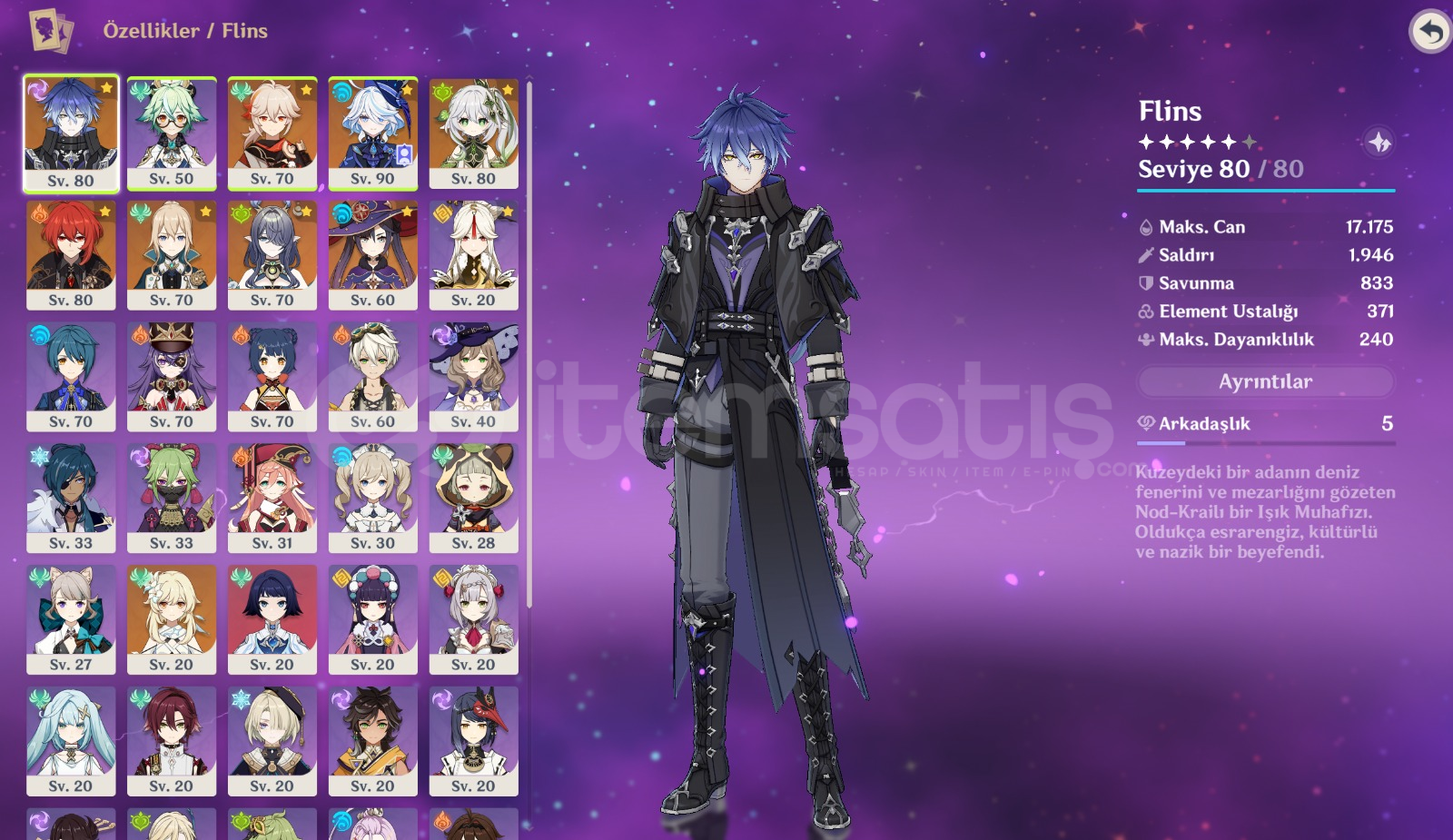 Tüm e posta ve şifre değişebilir.Hesapta 5 yıldızlı karakter olarak resimdeki karakterler mevcuttur yadigarlarıda karakterler için en uygun yadigarlardır flinsin sadece 10 seviye basmaya ihityacı vardır yadigar yetenek ve silahı uygundur.