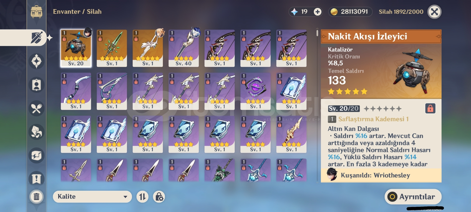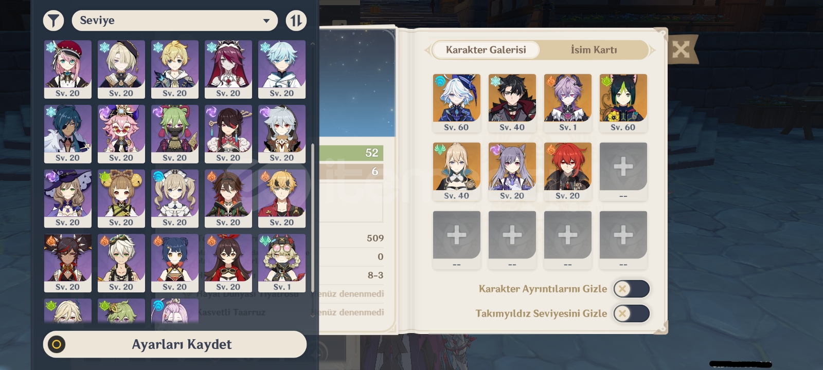• Hesap Avrupa sunucusundadır.• XP materyalleri, resinler vs saklanmıştır alıcı için.• Furina + Durin + Wriothesley (5✨ Limited)• Tighnari + Keqing + Diluc + Jean (5✨Standart)• Fotoğrafta gördüğünüz 5 yıldızlı silahlar dahildir.• Map fullenme yüzdesini tam olarak hatırlamıyorum ama nord krai ve natlana girilmedi.• Mail değişimi yapılacak...
