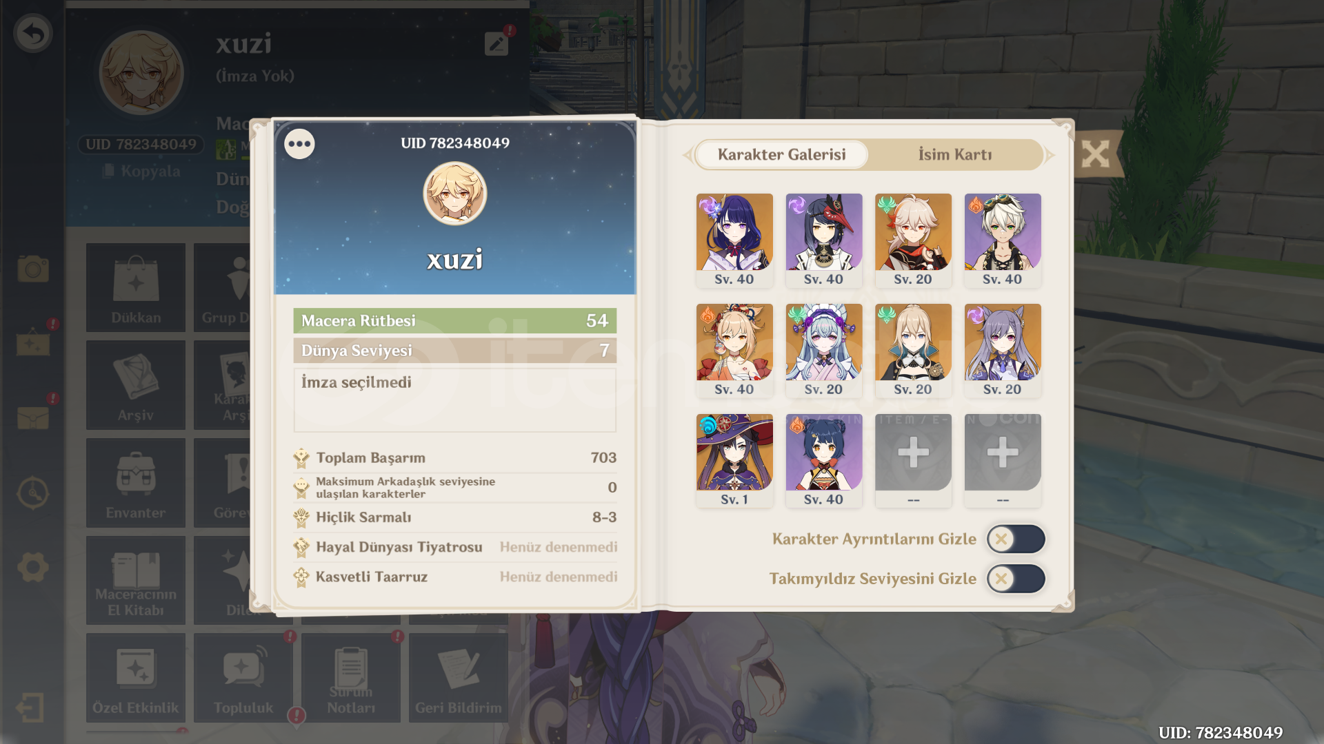 hesapta c2 raiden, kendi silahı ve en iyi hypercarry takımı var. Kujou sara c6. bol bol kaynak var. 5 yıldızlar:c2 RaidenYoimiyaKazuhaMizukiJeankeqingmonaSilah olarak raiden sig ve kinich sig birde göklerin atlası var.bannerler düşük ptbol bol kaynak varkullanıcı adı da beraberinde teslim edilecektir hesabı tamamen üstünüze alabilirsiniz