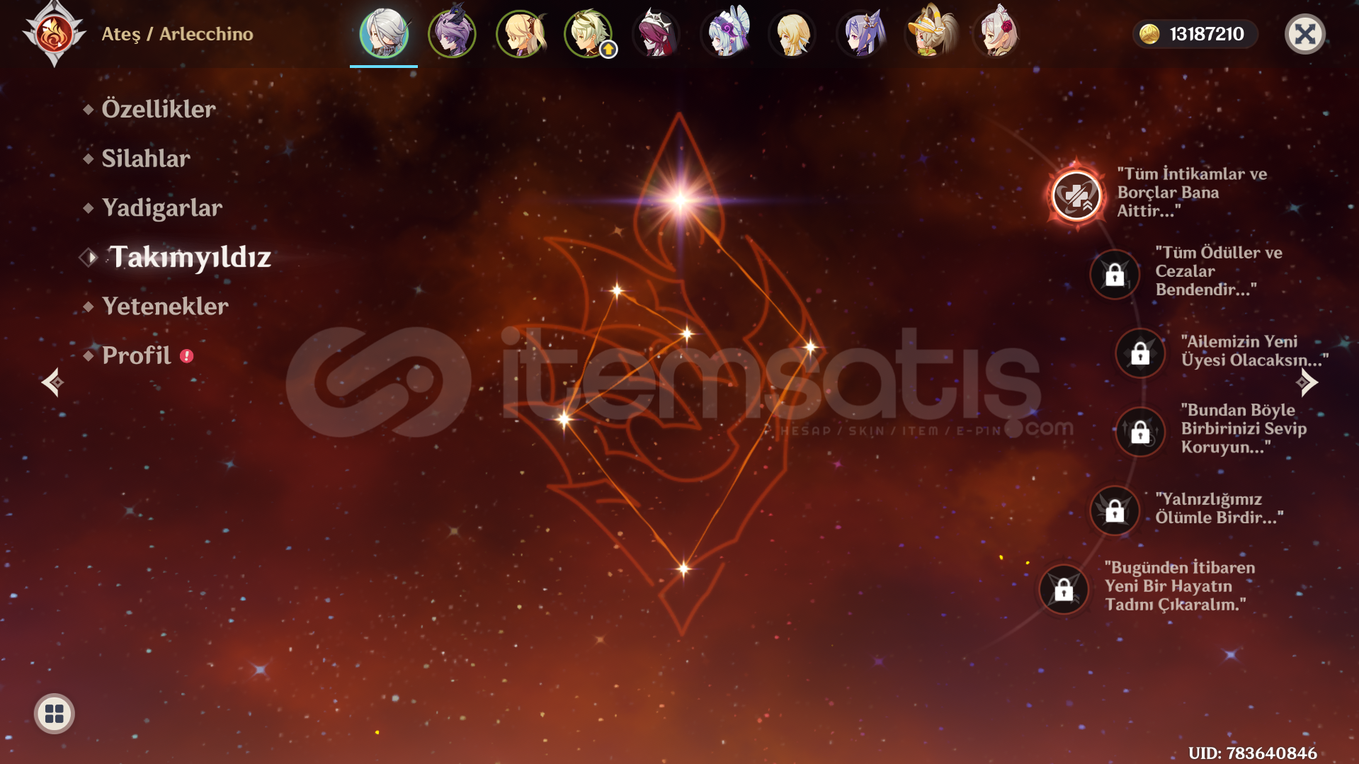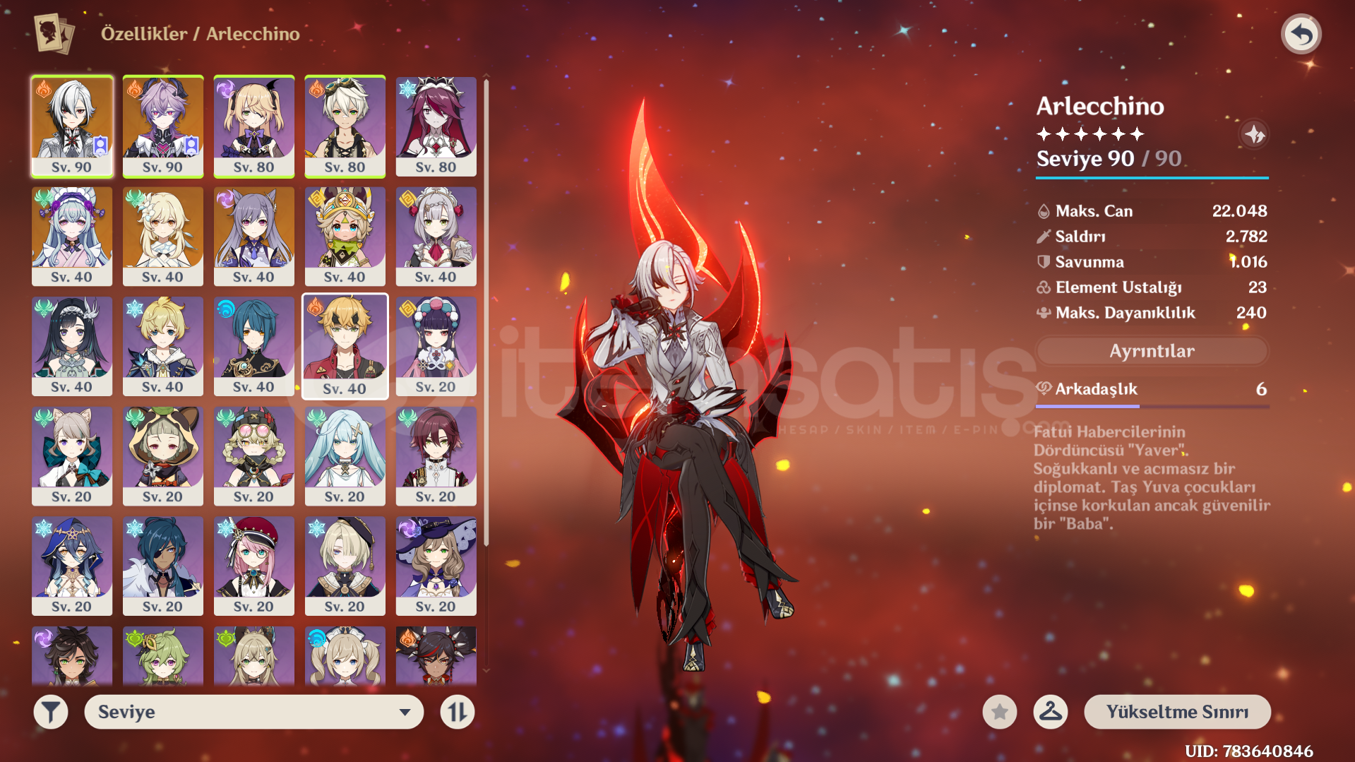 AR 55 EU HESAP; ARLECCHİNO OVERLOAD TEAM KASILI.PAZARLIK PAYI VARDIR.TEMEL BÜTÜN BİLGİLER FOTOĞRAFLARDA..NATLAN (BÖLÜM 5 SAHNE 4) NOD KRAI, ARA SAHNE (BÖLÜM 2 VE 3) HÜKÜMDAR GÖREVLERİ YAPILI DEĞİL.NOD KRAI KEŞİF İLERLEMESİ %0RATE UP VAR13 MİLYON MORA VE 3000+ BÜYÜ KİTABIÇAYDANLIĞA BAŞLANMAMIŞKISACA BOL BOL PRİMOGEM KASILABİLECEK HESAP.5...
