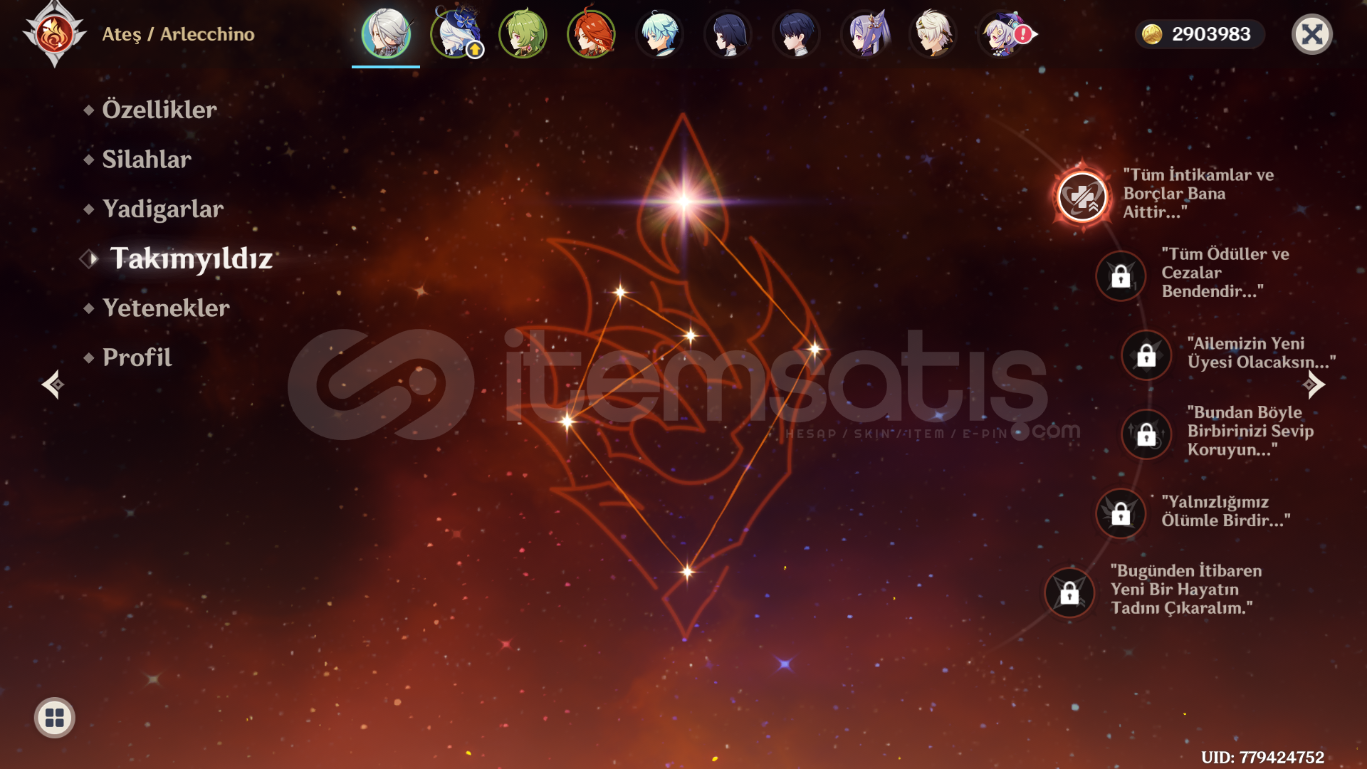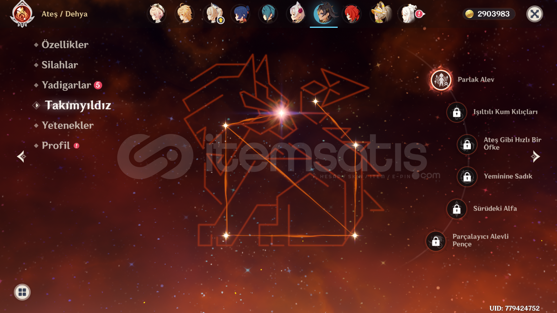 Hesapta Toplam 7 adet 5 yıldızlı karakter bulunur