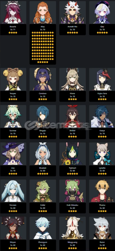 60 AR Hesap(EU)Jean SkinKeqing SkinBarbara SkinKaeya SkinLisa SkinFischl SkinNingguang SkinC4 JeanC2 QiqiC1 KeqingC1 DillucC1 KokomiR2 Amos BowC6 XianglingC5 BennettC6 DionaC6 YanfeiC6 FischlC5 RosariaC6 SucroseC1 LisaC6 Kujou SaraC6 CandaceC1 AmberC6 NingguangC6 BarbaraC6 BeidouC6 NoelleC6 SayuC5 Kaeya (!)C6 RazorC6 ThomaC5 Gorou19M MoraDeğerli olanları yazdım diğerlerinde de cons varda 2 3 4 arası o yüzden yazmadım c6 olanları yazdım genellikleHesap...