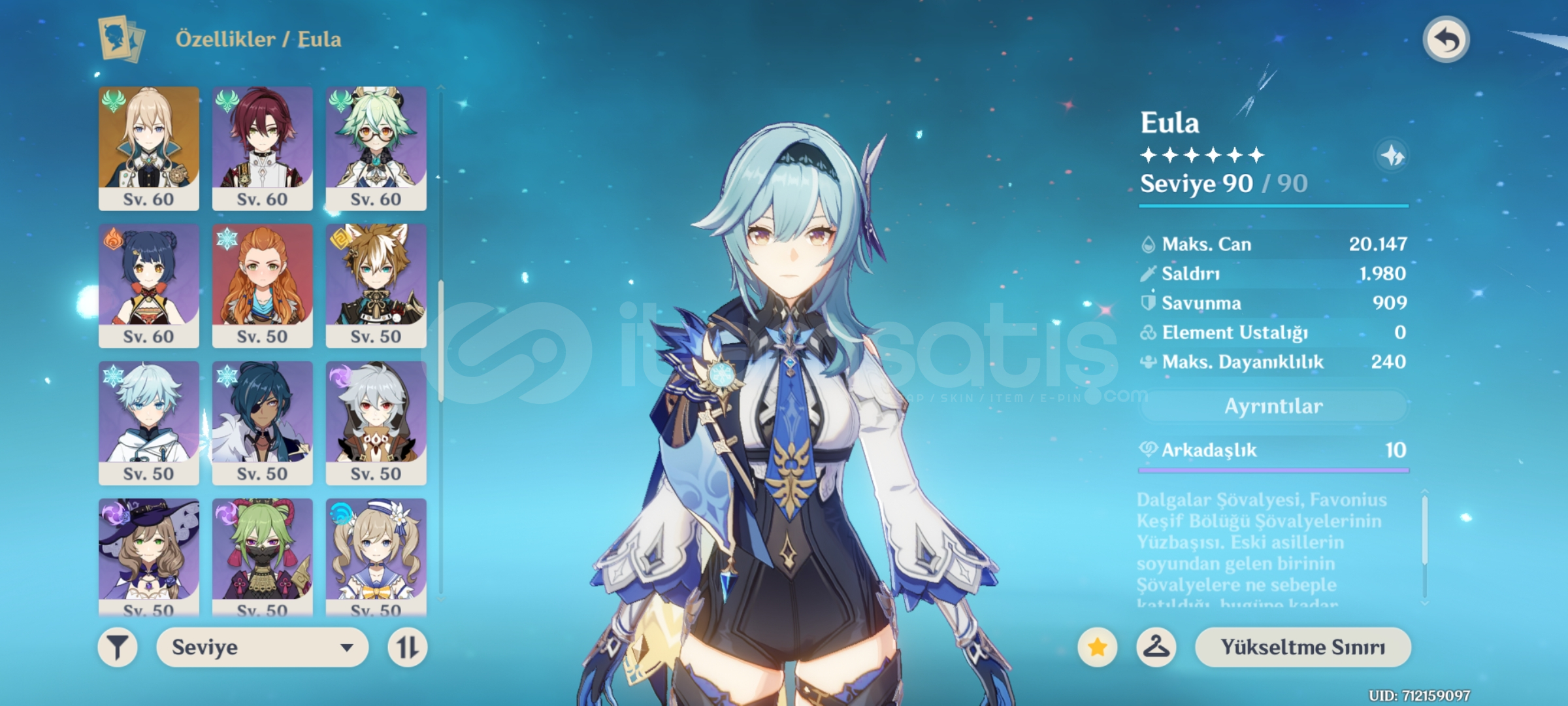 EU AR56 25x5 C1 Mualani Eula Shenhe Wrio Hesap