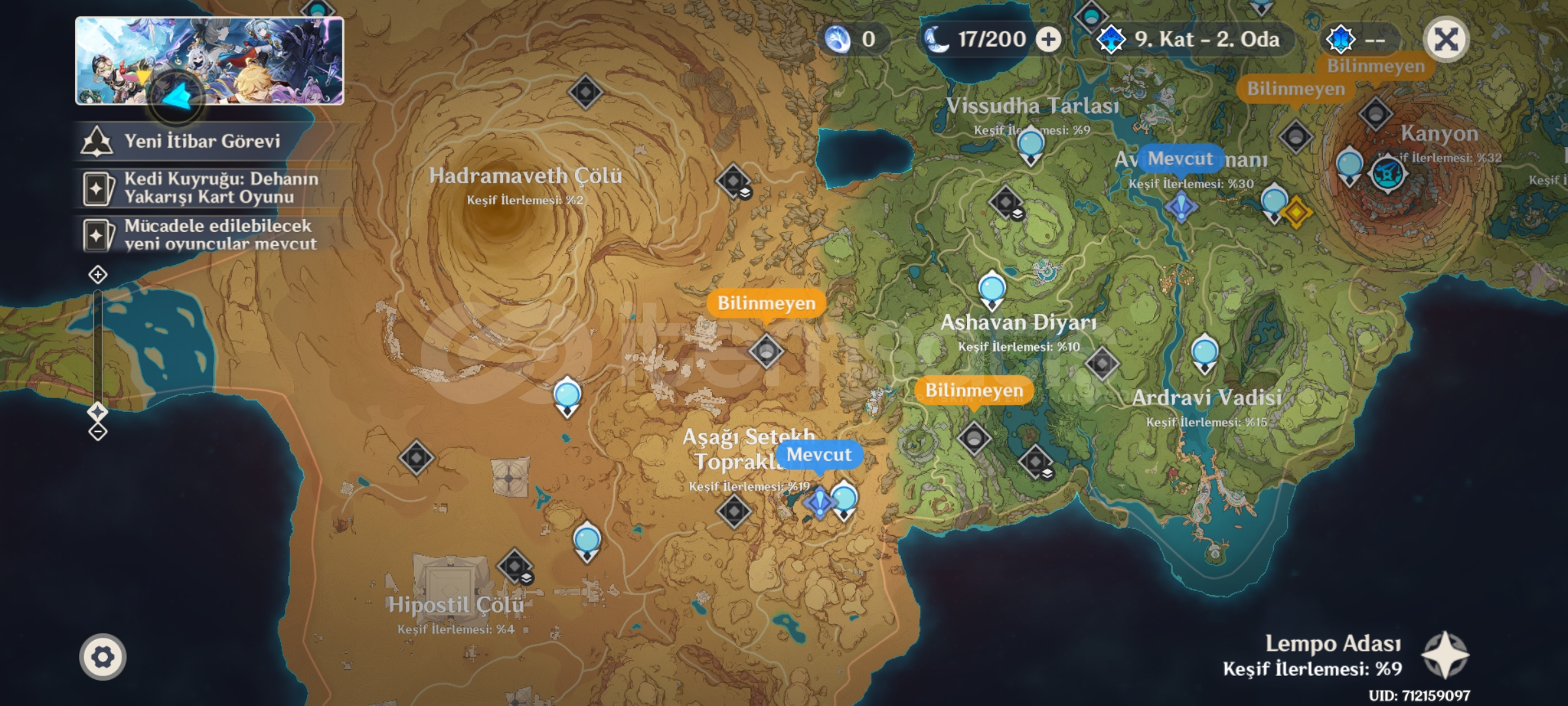 nod krai, natlan, fontaine, sumeru çölü, chenyu vadisi yeni yeni açıldı, hâlâ kapalı yerleri de var. diğer açık yerlerin yüzdeleri de çok düşük. bir sürü görev var. primogem kasılacak kaynak çok çok fazla.