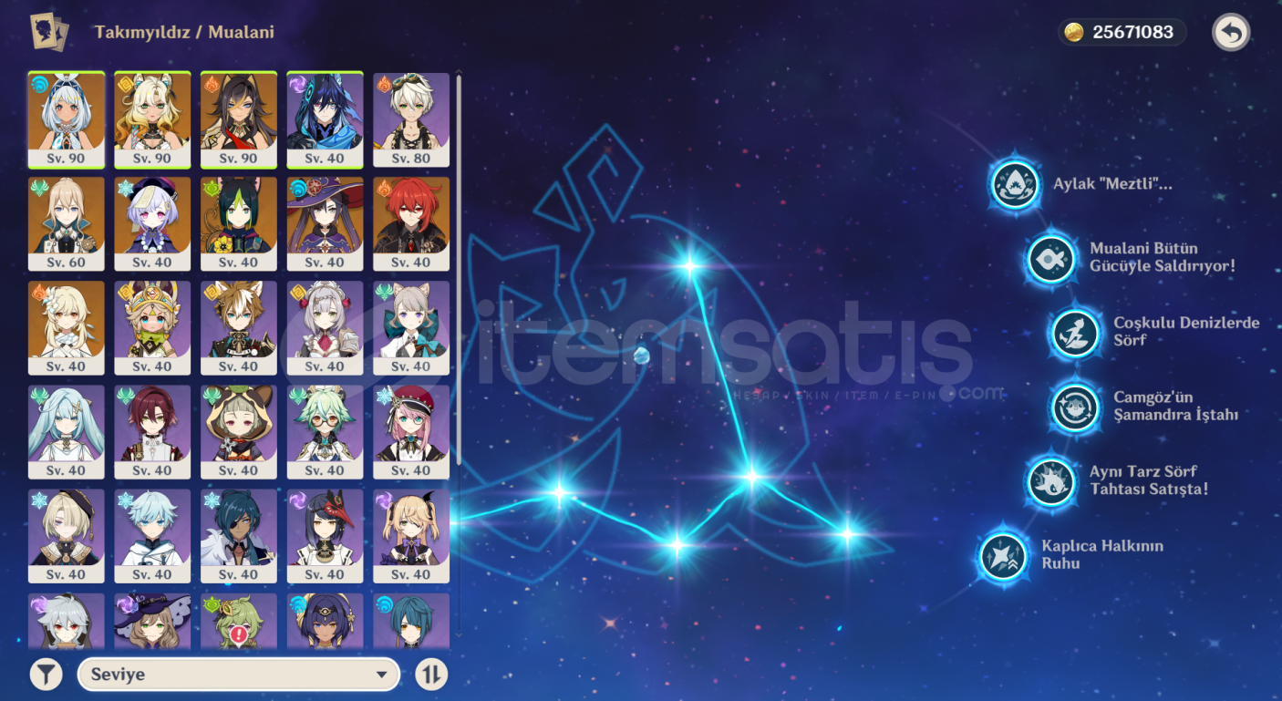 Genshin Impact EU – C6 Mualani + Signature Weapon + Xilonen Hesap🔥 Öne çıkan özellikler:Karakter: MualaniConstellation: C6Silah: Signature Weapon (Özel silah)Karakter Seviyesi: 90Nadirlik: 5★Adventure Rank: 56Ek Karakter: XilonenMora: 1.000.000+Primogem: 150Ek Bilgiler:Hesap EU sunucusundadır.Tamamen güvenli ve aktif olarak kullanılmamıştır.Tüm karakterler, silahlar ve materyaller eksiksiz şekilde teslim edili...