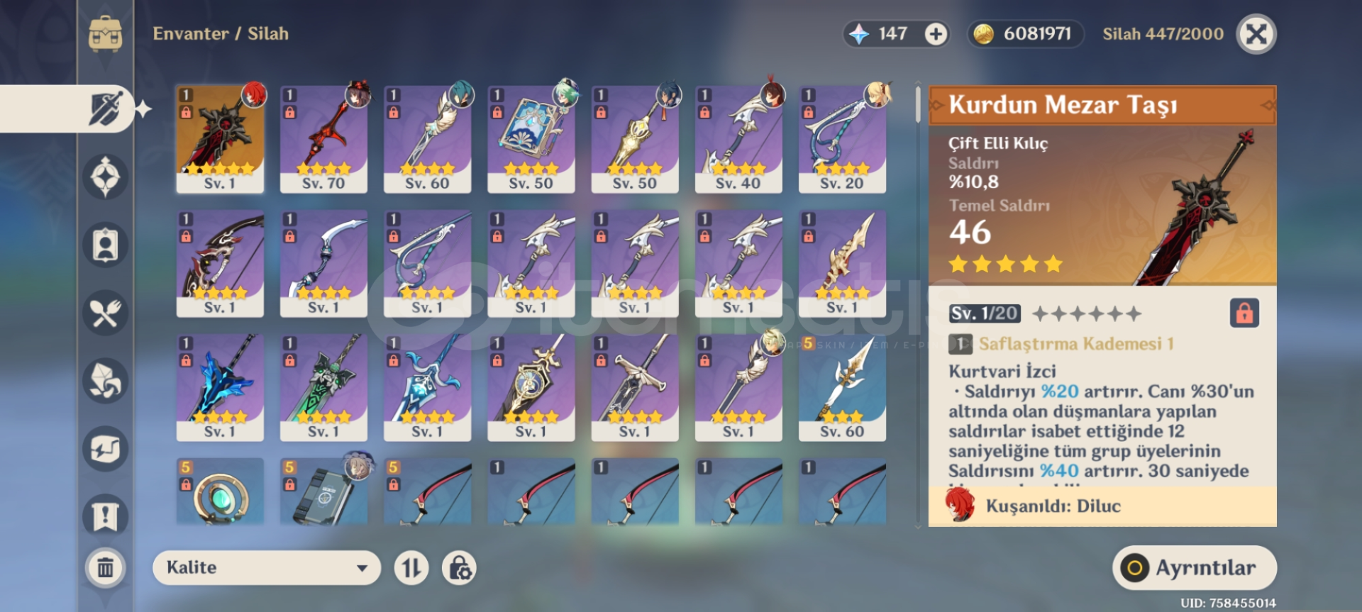 ⭐Eu Hutao Diluc+Silah Süper hesap⭐