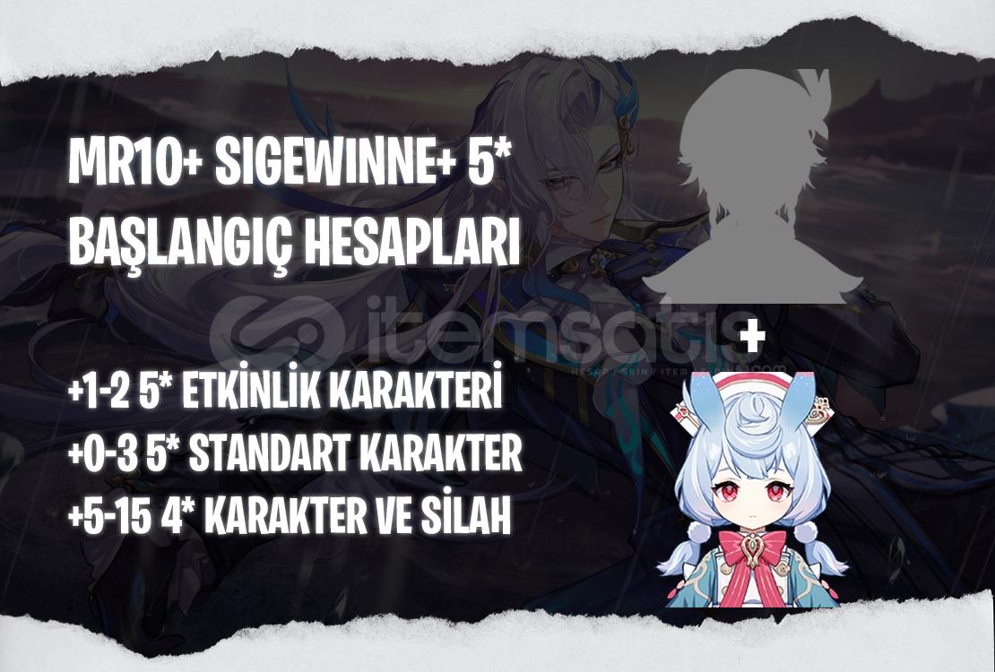Bu ilanı satın aldığınızda MR10+ seviyesinde içerişinde Sigewinne + 1-2 adet rastgele 5* etkinlik karakteri bulunan bir hesap tarafınıza iletilecektir.