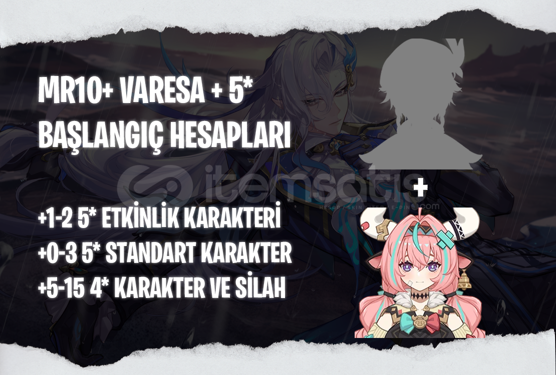 Bu ilanı satın aldığınızda MR10+ seviyesinde içerişinde Varesa + 1-2 adet rastgele 5* etkinlik karakteri bulunan bir hesap tarafınıza iletilecektir.